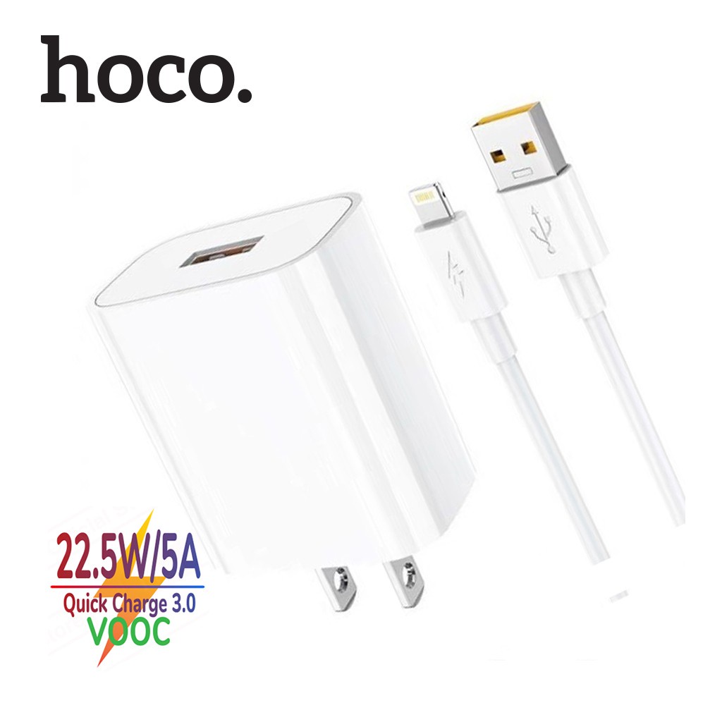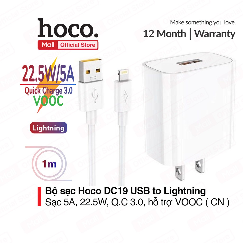 ✨Bộ Sạc Nhanh Dành Cho Hoco DC19 USB To IP, Sạc Nhanh 5A/22.5W, Kèm Dây Dài 1m, Hỗ Trợ Sạc VOOC, Quick Charge 3.0, Hàng Chính Hãng.