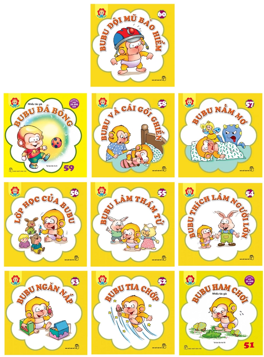Trọn bộ Bubu Bé học lễ giáo là 59 cuốn, trải dài từ tập 1 đến 60 (nhà xuất bản không xuất bản tập 13).