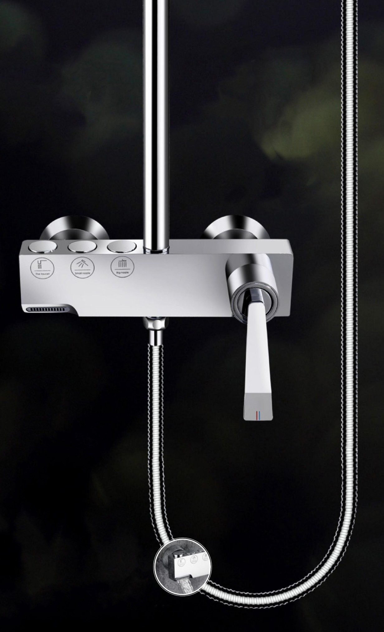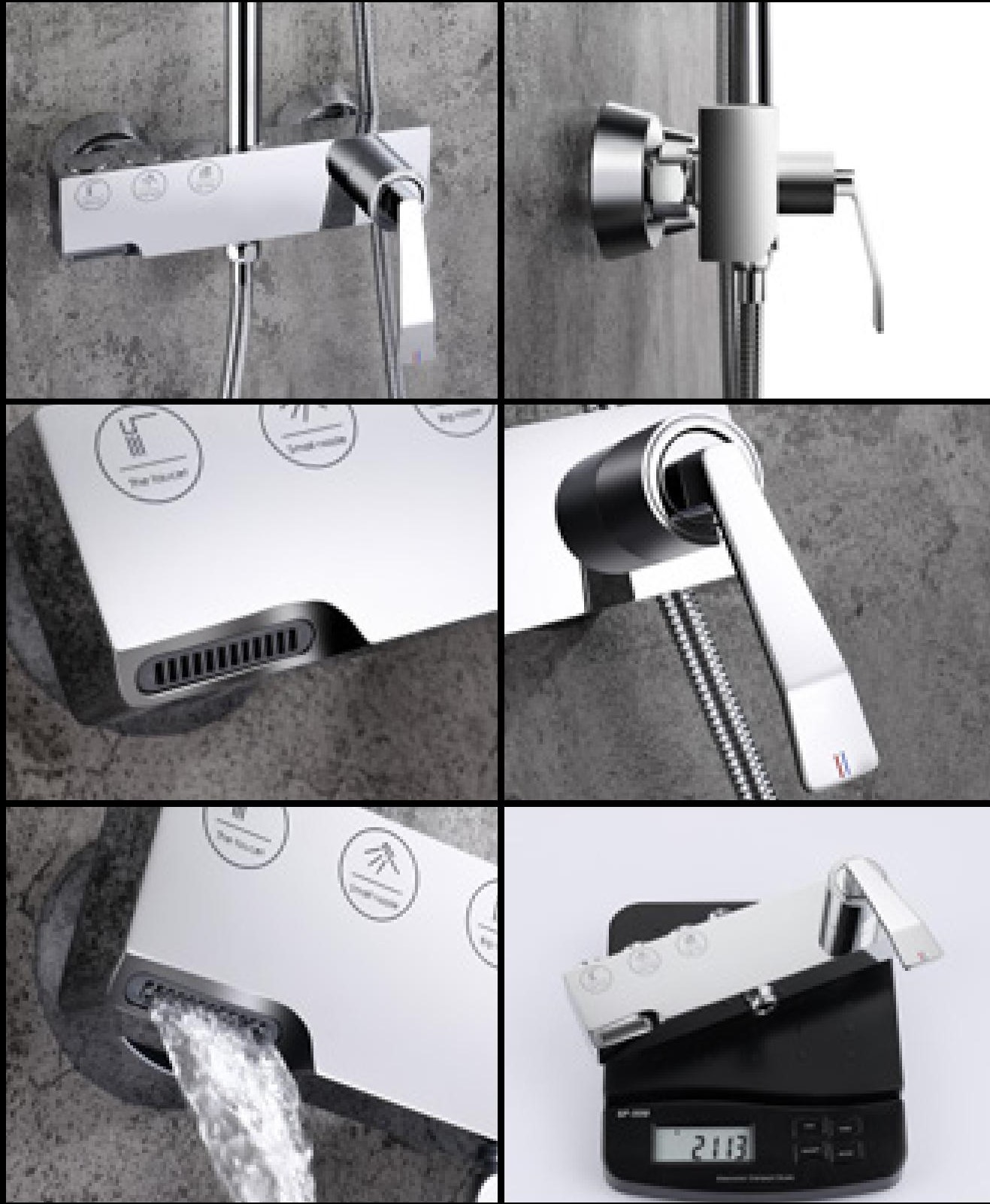 - Sản phẩm gồm 3 vòi: 3 chế độ tắm, riêng vòi tắm nghiêng có 3 chế độ phun nước: Hỗn hợp, Massage, và bình thường.