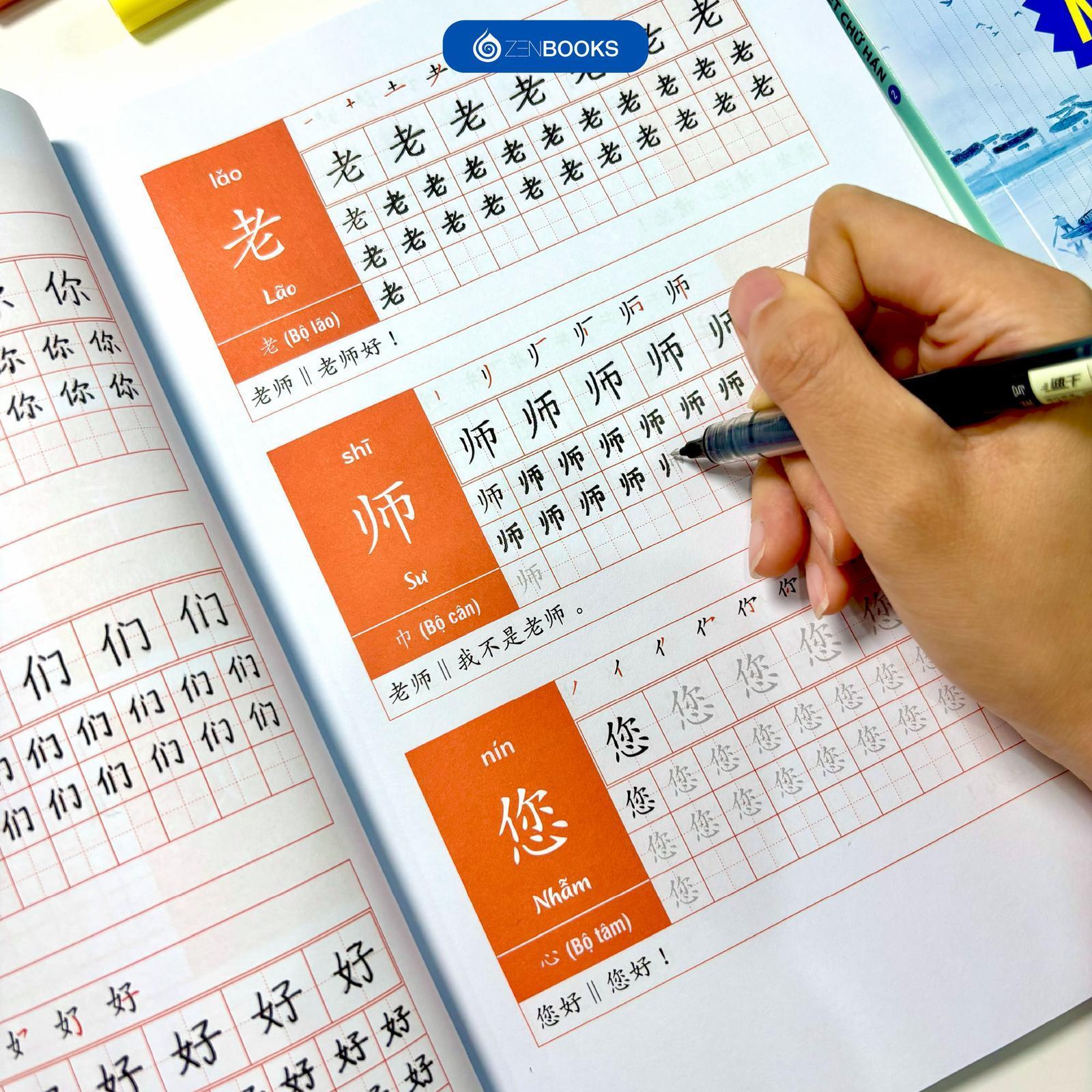 Song song với đó, thứ tự các nét viết cũng được trình bày ngay bên cạnh để người học nắm được nét nào viết trước, nét nào viết sau, từ đó giúp việc viết chữ Hán trở nên chuẩn, nhanh và đẹp hơn.
