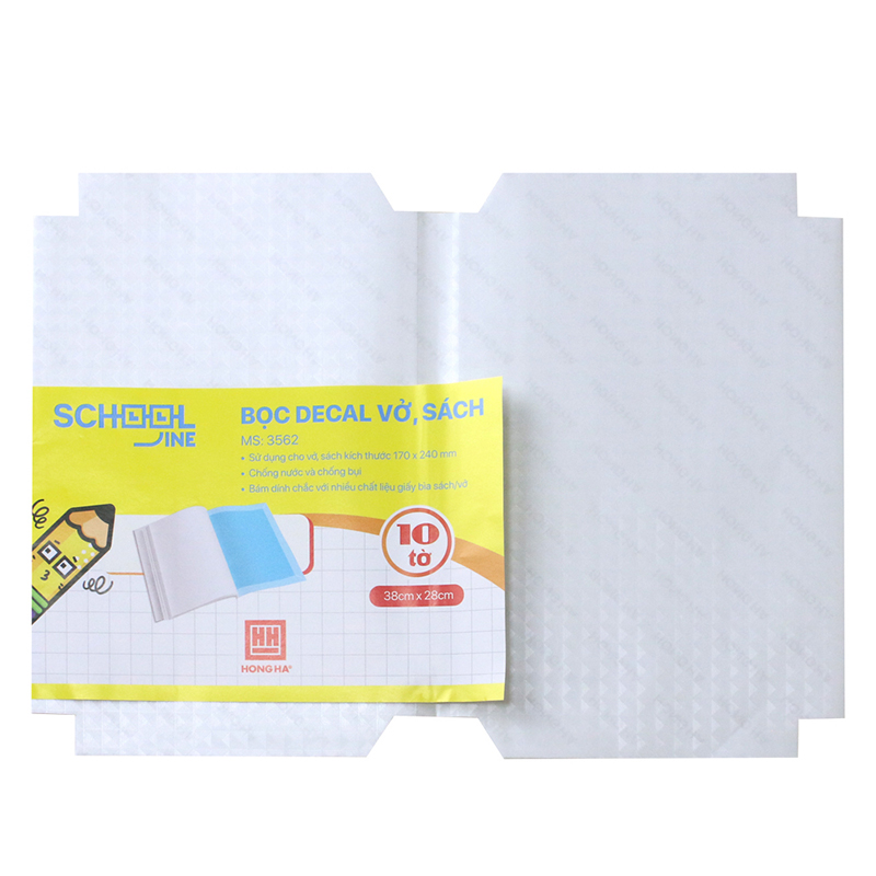 Bọc decal vở, sách Hồng Hà (280x380mm) (10 chiếc/tập) - 3562 được phù hợp với nhiều loại sách vở ô ly.
