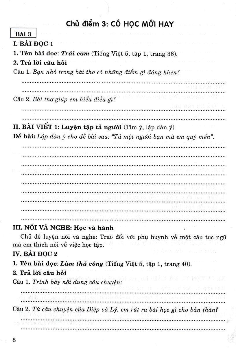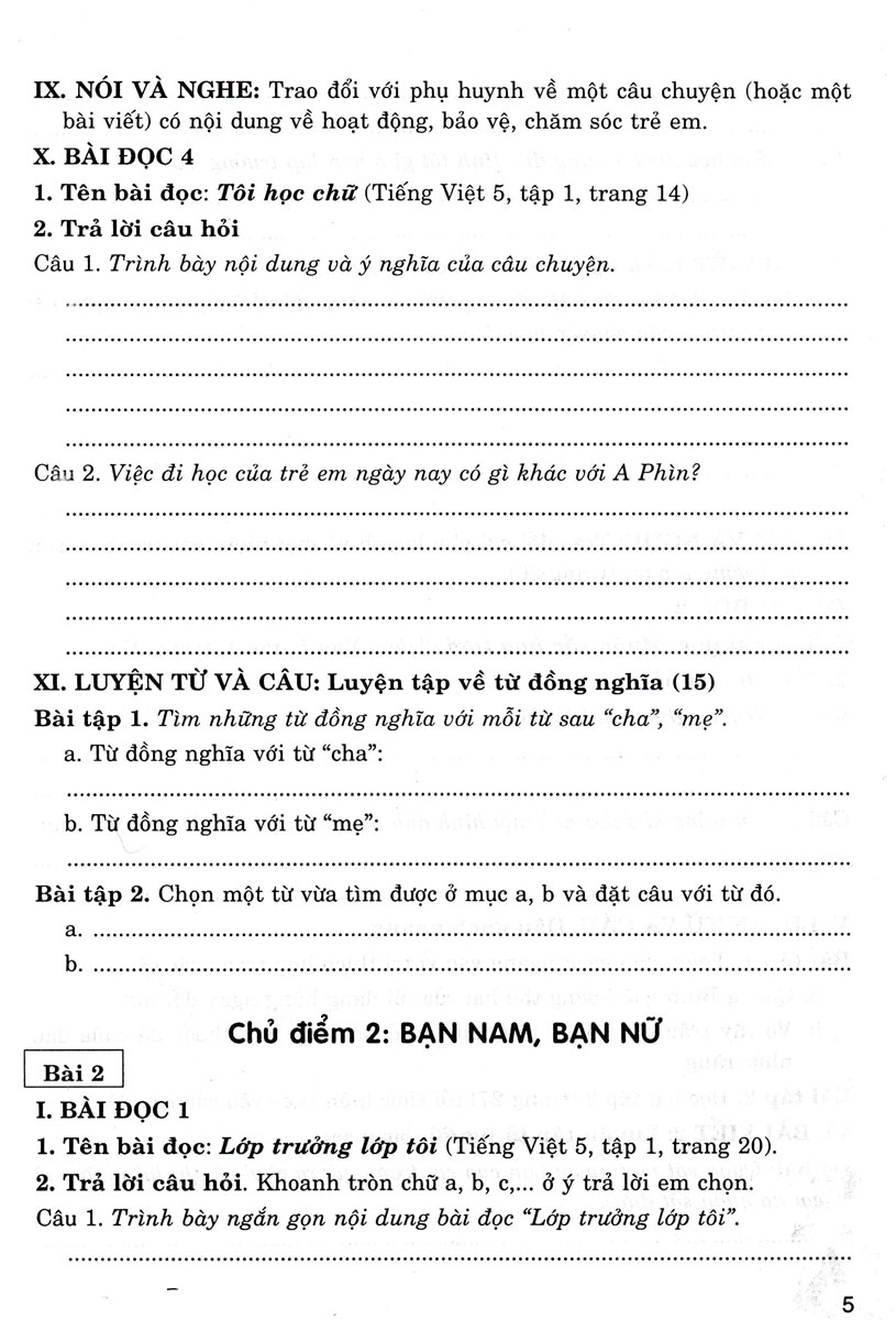 Cuốn sách "Bồi Dưỡng Tiếng Việt Lớp 5" sẽ giúp các em học tốt môn Tiếng Việt theo chương trình mới. Cuốn sách được biên soạn với những nội dung sau đây: