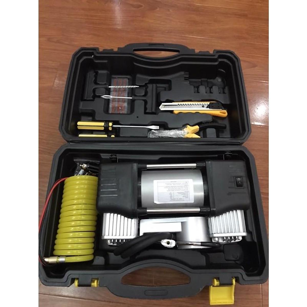 Bơm Ô Tô 2 Xi Lanh Mã Lực Lớn Siêu Khỏe Có Hộp Nhựa - Bơm oto 2 xilanh Bơm lốp 2 xi lanh, siêu khỏe, tiết kiệm thời gian. - Có đồng hồ hiển thị số cân hơi giúp bạn chủ động kiểm tra áp su...
