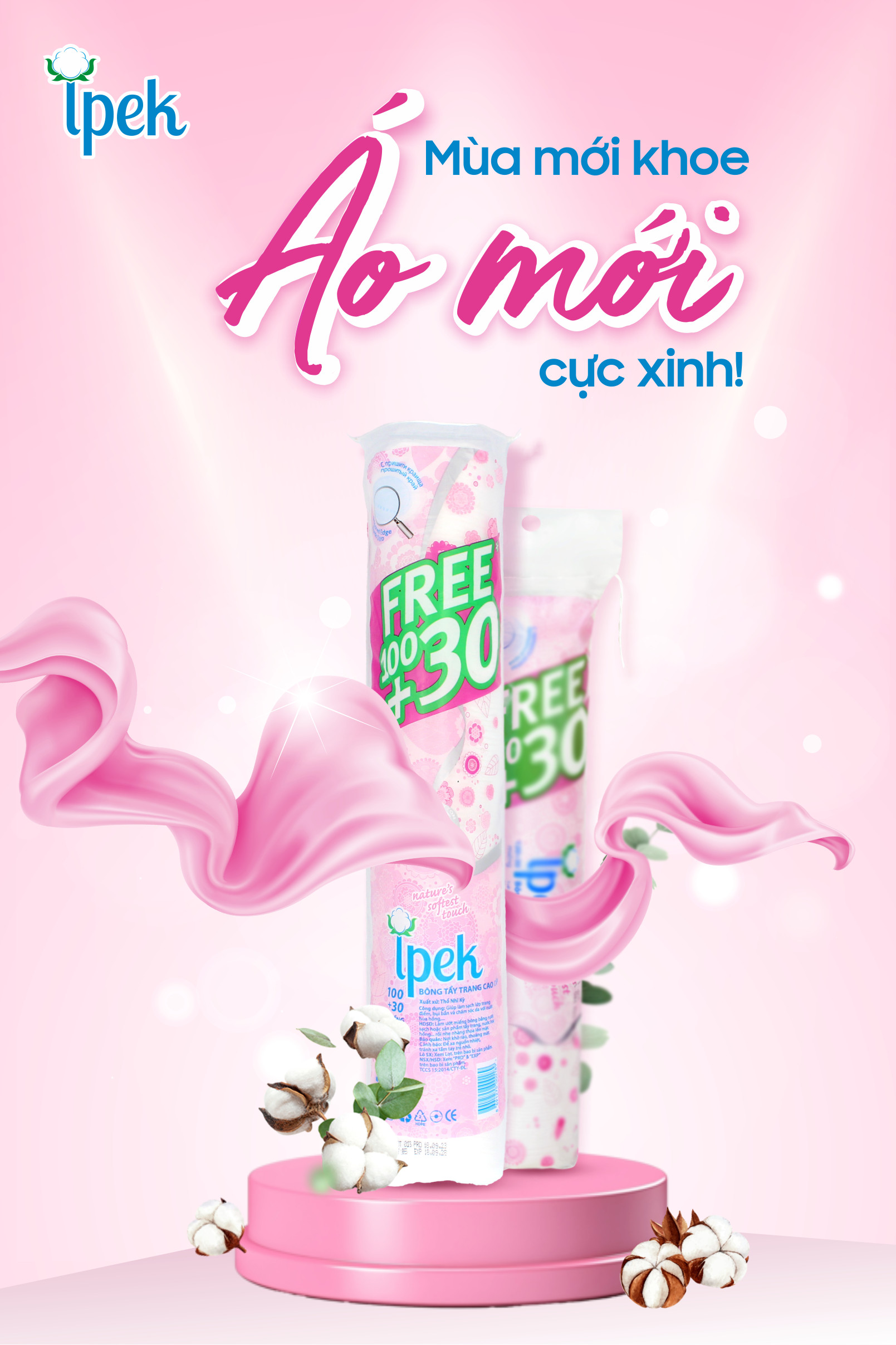 - Combo Bông Tẩy Trang Ipek 130 Miếng (Thổ Nhĩ Kỳ) thành phần 100% bông cotton là bông tẩy trang hữu cơ được sản xuất bởi công ty Ipek Idrofil Pamuk công ty hàng đầu