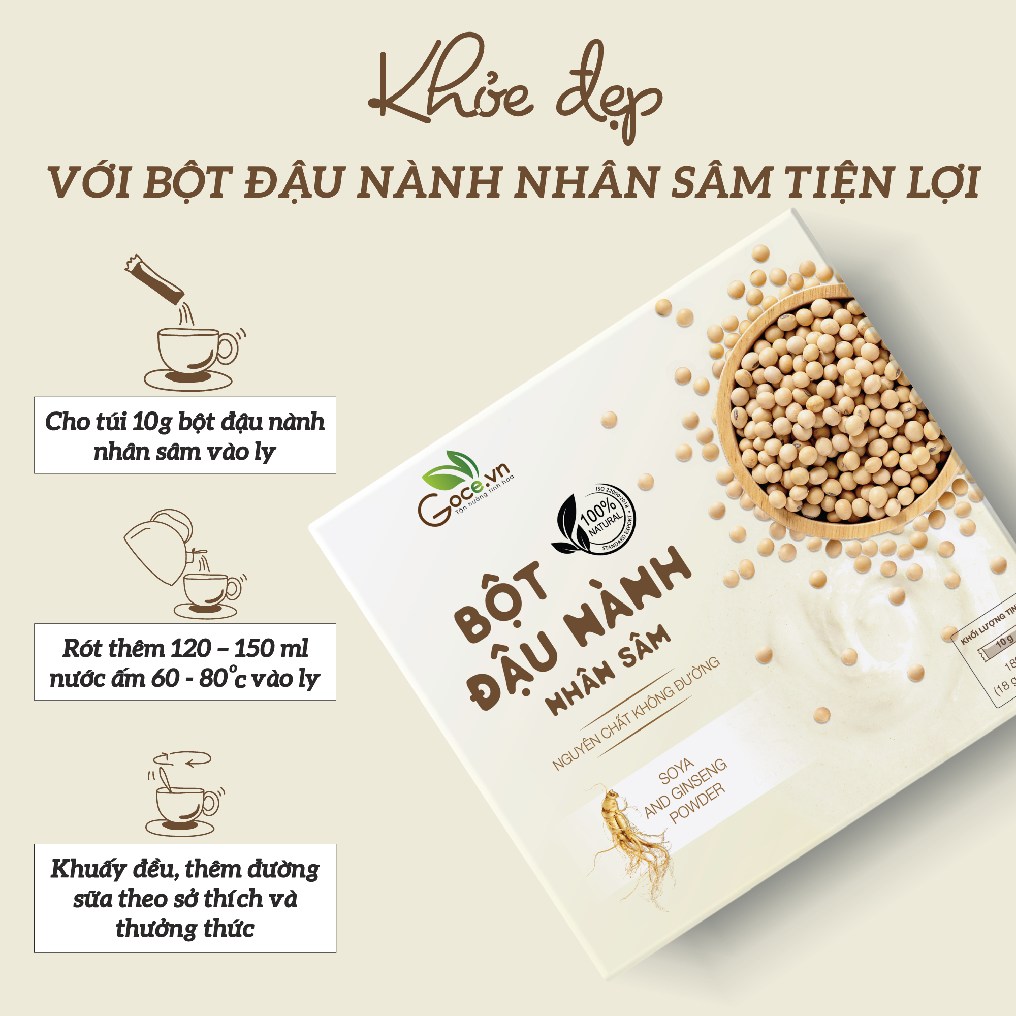 ✨Bột đậu nành nhân sâm Goce - 180g (18 gói x 10g)