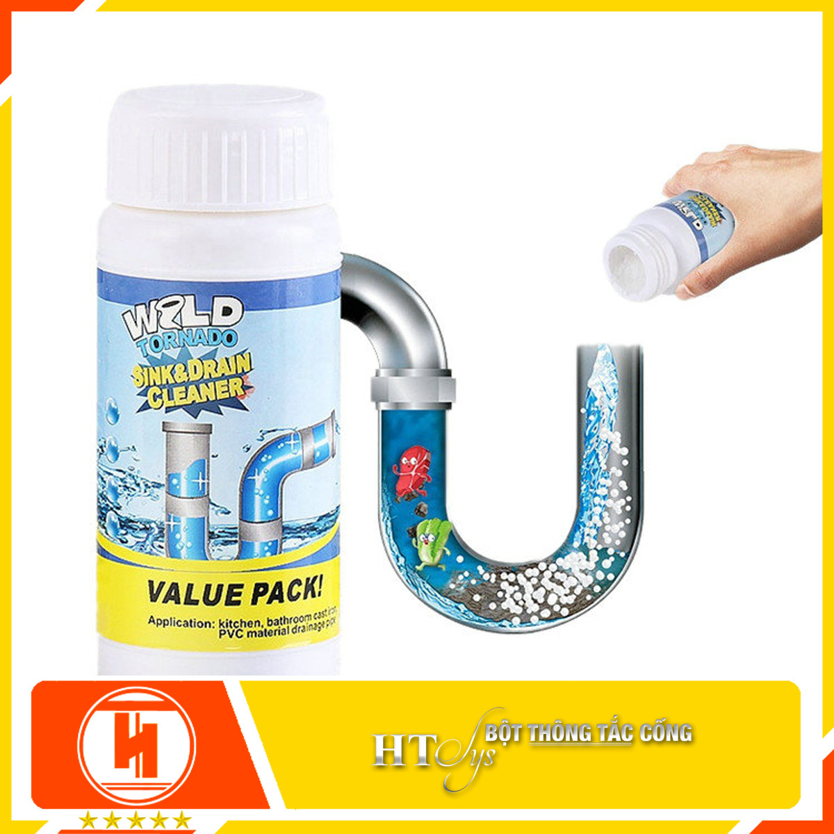 HT SYS | BỘT THÔNG CỐNG CỰC MẠNH 110G - Giải quyết thông tắc nhanh chóng cho Bồn Cầu, Lavabo, bồn rửa chén, thông cống. Tẩy sạch bẩn bám ở chậu rửa, bồn cầu, máy giặt, bồn tắm, tường ,sàn nhà vệ sinh, toàn với người sử dụng