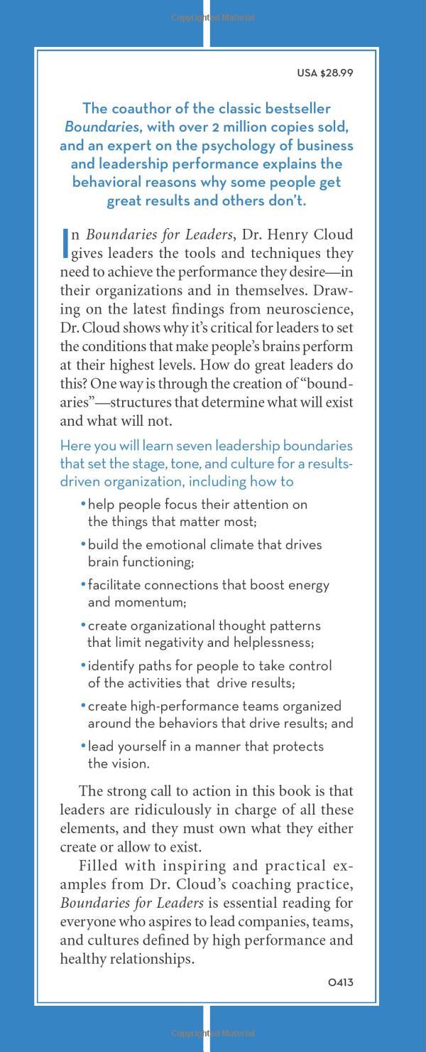 In , clinical psychologist and bestselling author Dr. Henry Cloud leverages his expertise of human behavior, neuroscience, and business leadership to explain how the best leaders set boundaries within their organizations--with their teams and with themselves--to improve performance and increase employee and customer satisfaction.