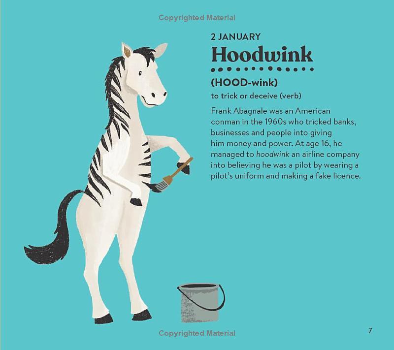 Follow a menagerie of animals as they teach one new word for each day of the year, including a pronunciation guide, definition, sample sentence, and interesting trivia about the word's usage or etymology. Each month concludes with an outlandish story that features all the new words learned.