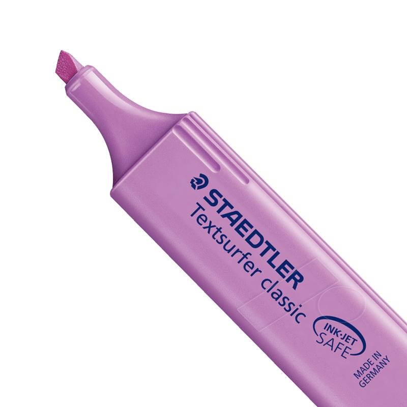 Highlighter with large ink reservoir for extra-long highlighting performance INK·JET SAFE – does not smudge inkjet printouts and handwritten texts Copy Proof - violet and turquoise for documents which are to be copied For paper, fax and carbon copies Fast-drying Twist cap for easy opening PP barrel and cap guarantee long service life Airplane-safe - automatic pressure equalization prevents pen from leaking on board aircraft Ultra-soft chisel tip approx. 1 – 5 mm Refillable