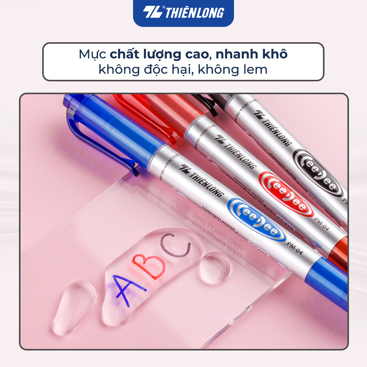 Bút lông dầu Thiên Long PM-04 là sản phẩm mới được sản xuất theo công nghệ hiện đại, đạt tiêu chuẩn chất lượng quốc tế, kiểu dáng được cải tiến ấn tượng. Sản phẩm có 2 đầu mực lớn nhỏ giúp đa dạng nét viết, thuận tiện khi sử dụng.