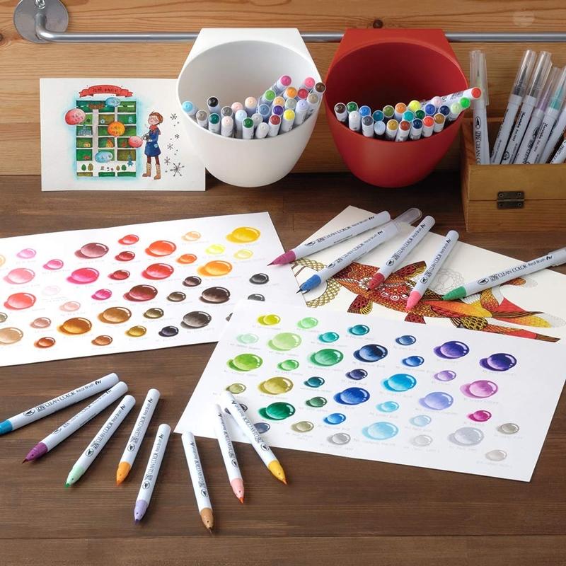 Chất liệu: Thân bút được làm từ nhựa có độ bền cao, đầu bút lông làm bằng sợi Polyester, nét nhỏ, dễ tô vẽ. Mực cao cấp, không chứa màu huỳnh quang, và hóa chất độc hại, an