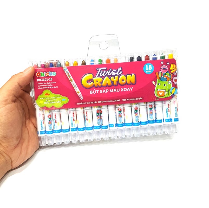 Bút có kiểu dáng nhỏ gọn, vừa tay cầm, thao tác dễ dàng, khi sử dụng bé chỉ cần xoay nhẹ để đẩy đầu sáp ra ngoài.
