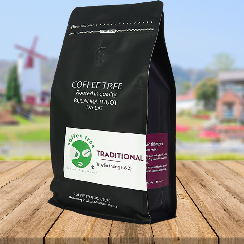 Thành phần / Ingredients: 100% Robusta. Hương vị / Flavor: Đắng đậm, sôcôla, mùi thuốc lá và hậu vị ngọt / Bold, chocolate, cigarette flavor and sweet after-taste. úi 500g / Bag 500gQuy cách / Type:
