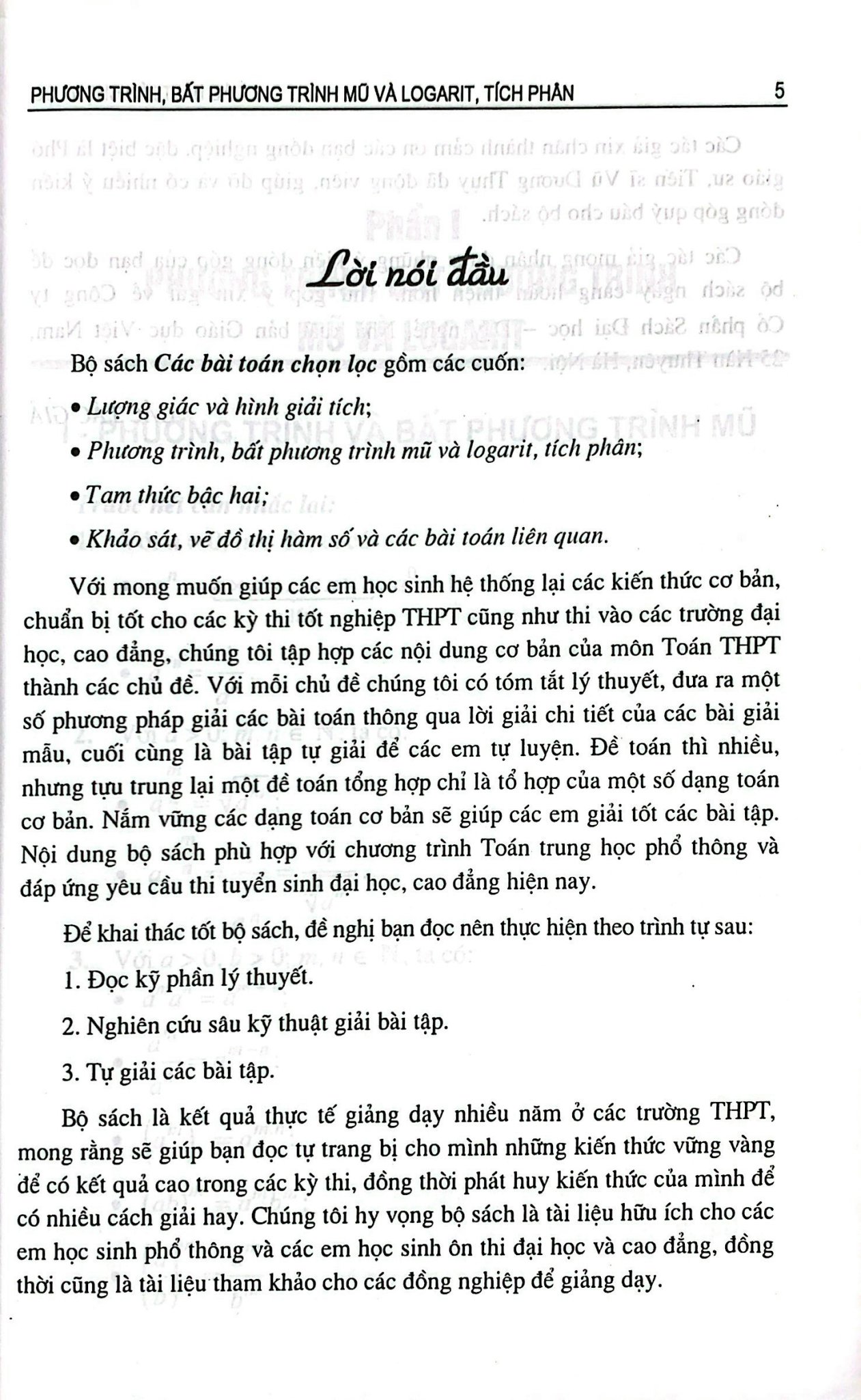 Các Bài Toán Chọn Lọc - Phương Trình, Bất Phương Trình Mũ Và L:ogarit, Tích Phân