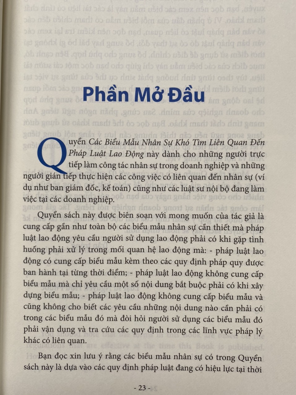 Cuốn sách ” Các Biểu Mẫu Nhân Sự Khó Tìm Liên Quan Đến Pháp Luật Lao Động ” dễ dàng tra cứu và tìm được các thông tin pháp luật lao động hữu ích và thực tế