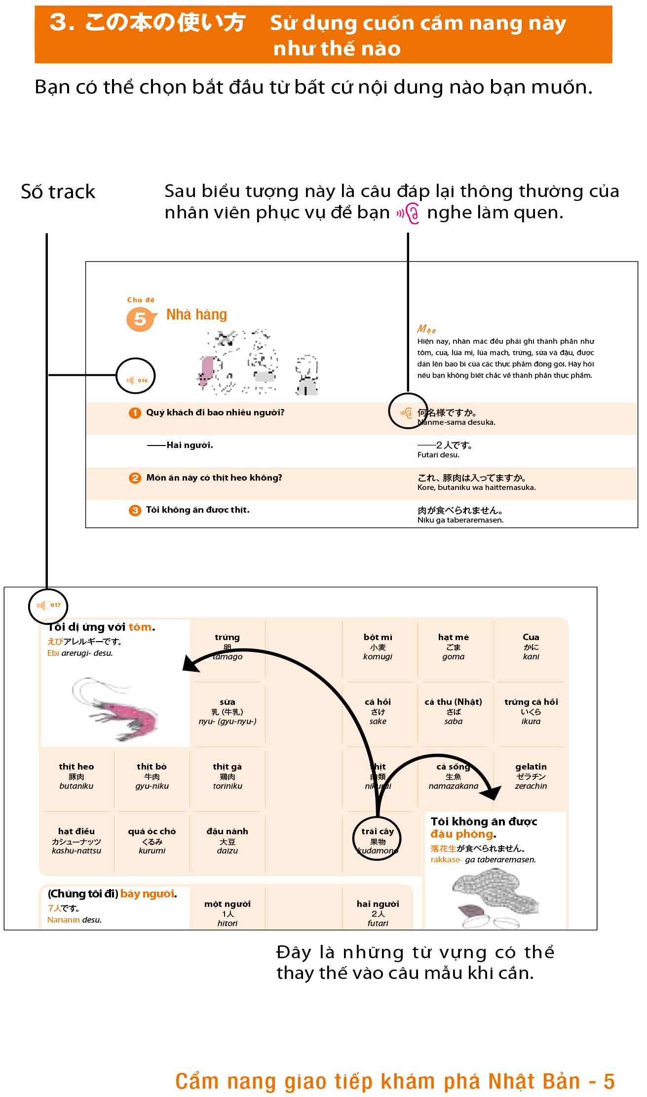 Cẩm nang giao tiếp khám phá Nhật Bản được biên soạn bởi NXB ASK Publishing. Quyển cẩm nang này có phần tiếng Nhật được viết bằng chữ Katakana / Kanji và chữ La-tinh với phần tiếng Việt được trình bày song ngữ. Bạn có thể tải file MP3 miễn phí tại website: