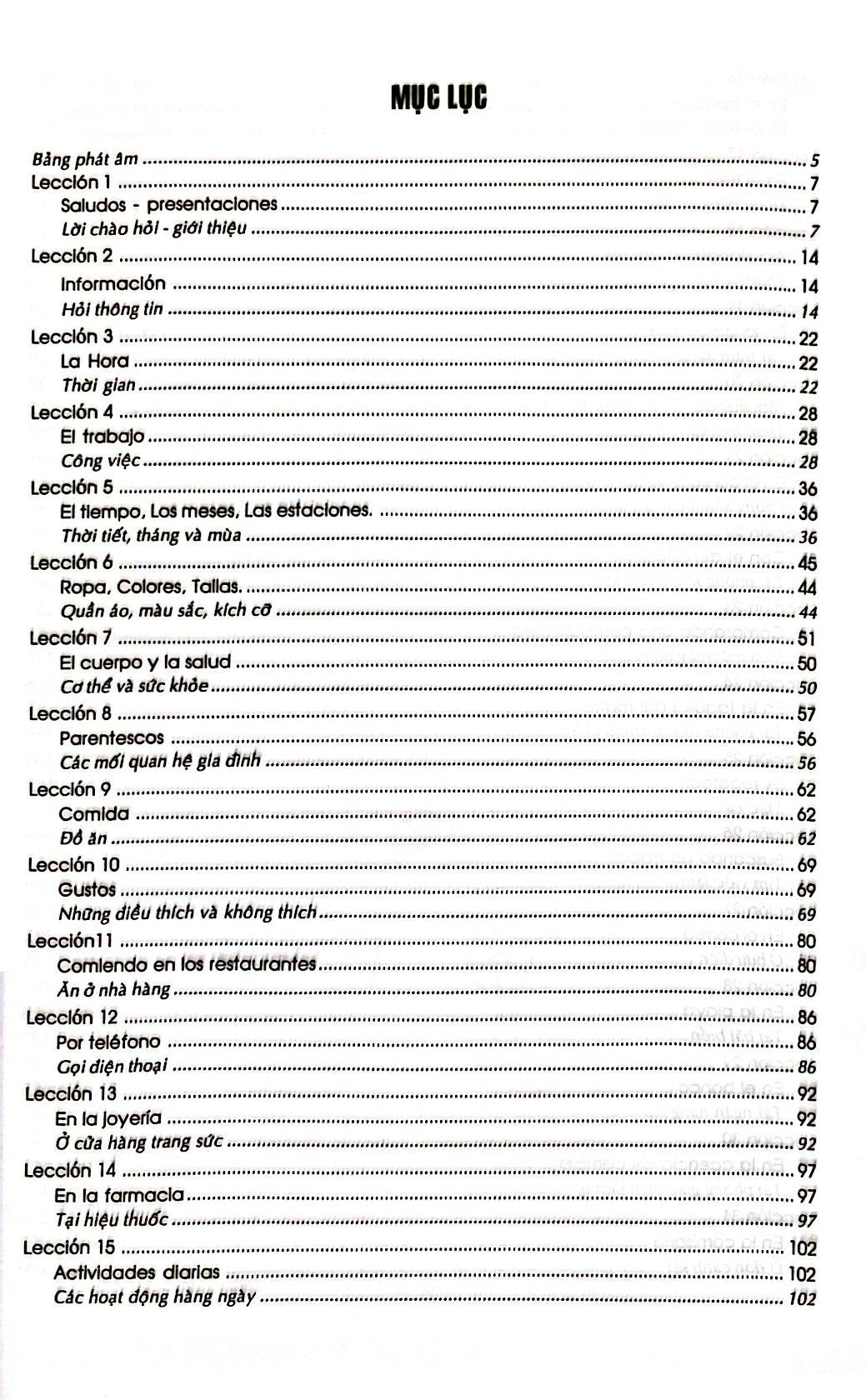 Phần phục lục: Phần này giới thiệu thuật ngữ về các quốc gia, địa lý, ngôn ngữ; bên cạnh đó còn giới thiệu Bảng động từ tiếng Tây Ban Nha và cuối cùng hướng dẫn bạn đọc viết thư bằng tiếng Tây Ban Nha.
