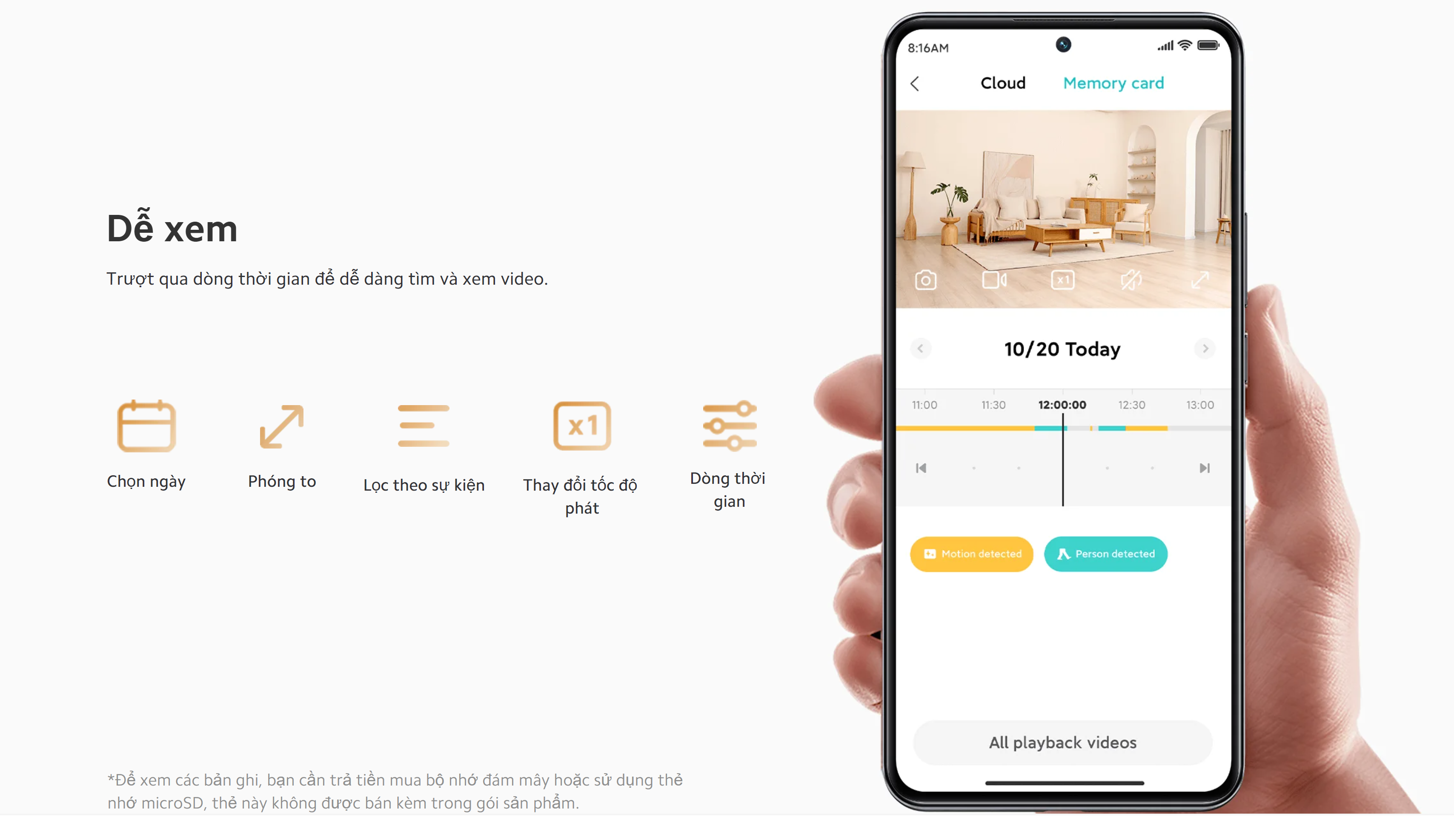 Camera trang bị công nghệ IA phát hiện chuyển động sẽ cảnh báo về điện thoại (Tính năng chống trộm).