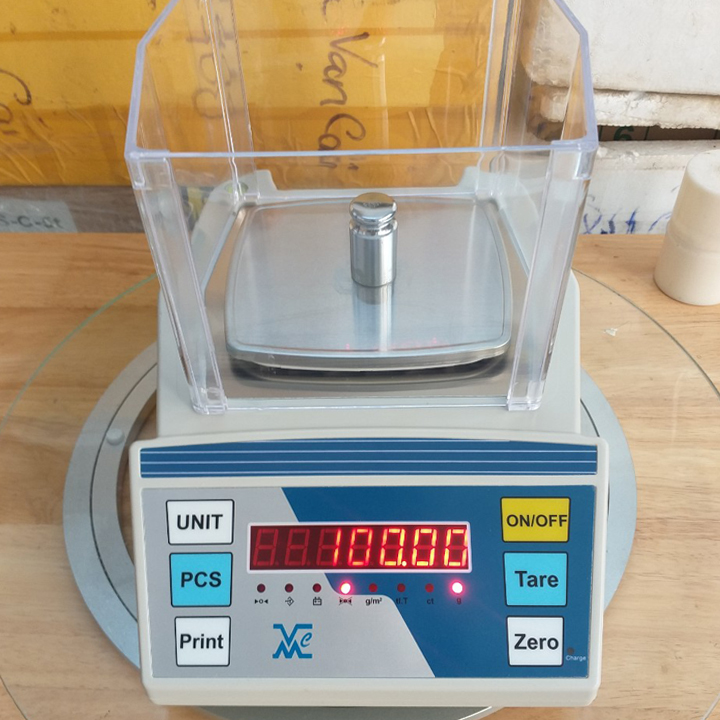 BỘ SẢN PHẨM CÂN ĐỊNH LƯỢNG MẪU VẢI, GIẤY Phương thức sử dụng: Dùng dao cắt mẫu vải, giấy tròn cho ra mẫu chuẩn 100 cm2. Sau đó dùng cân điện tử chuyên dụng để