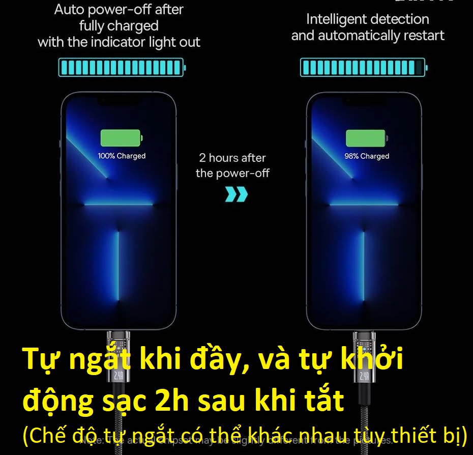 - Chiều dài cáp: 1 Mét - CHÂN CẮM usb ra ip - Dòng sạc tối đa: 5V-3A, SẠC NHANH 3A - Chất liệu: Dây dù, lõi đồng, hợp kim nhôm - Có đèn báo