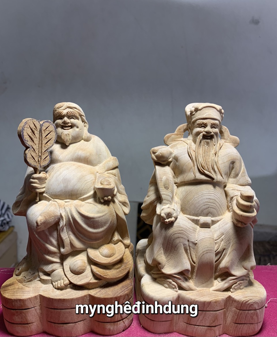 Cặp ông thần tài và ông thổ địa được làm bằng chất liệu gỗ ngọc am liền khối tự nhiên 100% kt cao 15x9x9cm _ Tượng được chạm khắc gọt tỉa vô cùng tỉ mỉ tinh xảo kỳ công. Đi hầu hết tất mọi chi tiết góc ngách nội dung hoa văn của tượng đều được gọt tỉa chỉnh sửa sắc nét hoàn toàn bằng tay thủ công truyền thống.