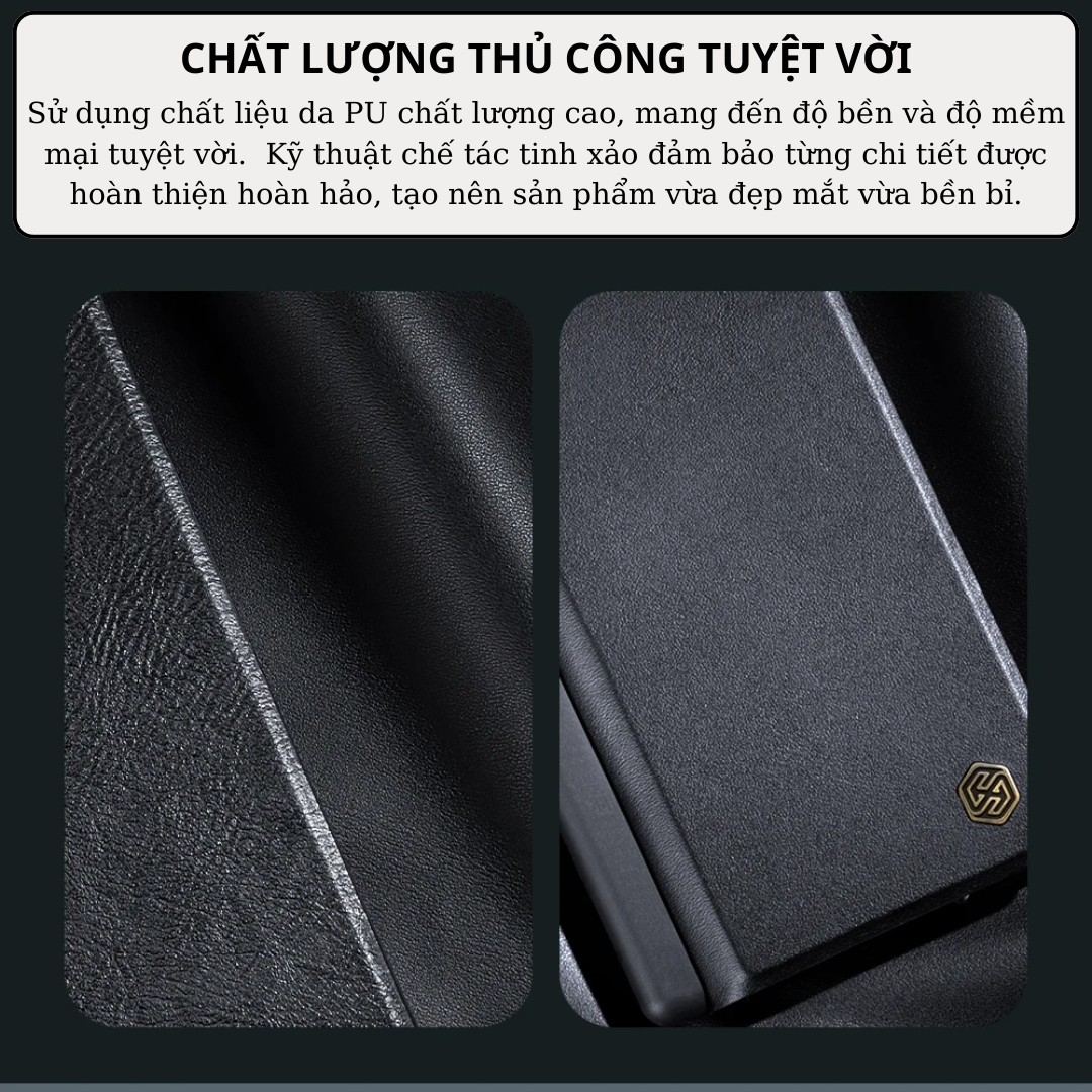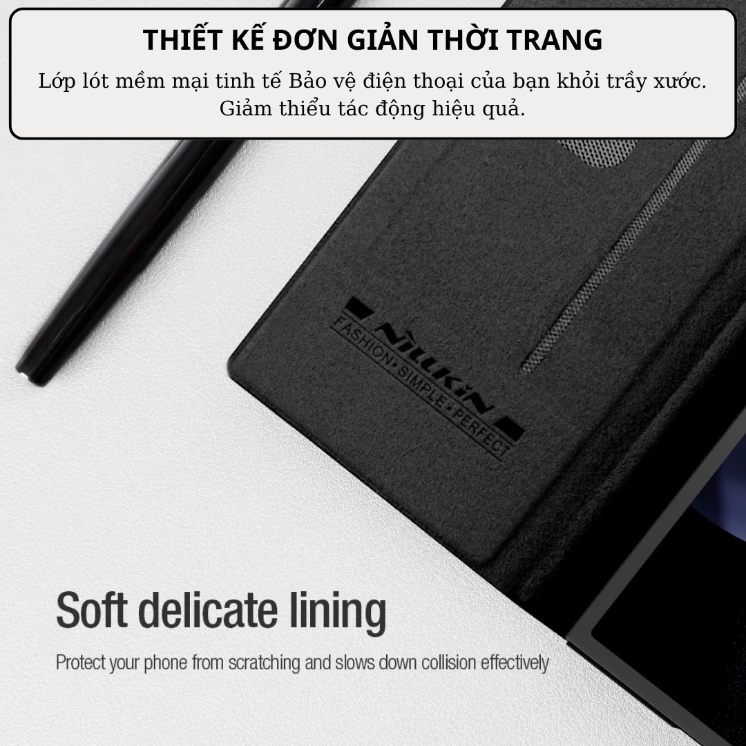 Case bao da chống sốc cho Samsung Galaxy Z Fold 6 trang bị nắp bảo vệ Camera và ngăn đựng S-Pen hiệu Nillkin Qin Pro Với phần tiếp xúc 2 bên hông ốp được gia công tĩ mỉ giúp tăng độ chắc chắn cũng như khả năng cầm nắm, giúp cho nó khó rơi ra khi bạn cầm trên tay. Mặt trong mềm mịn tăng độ thẩm mỉ và bảo vệ máy khỏi trầy xước.