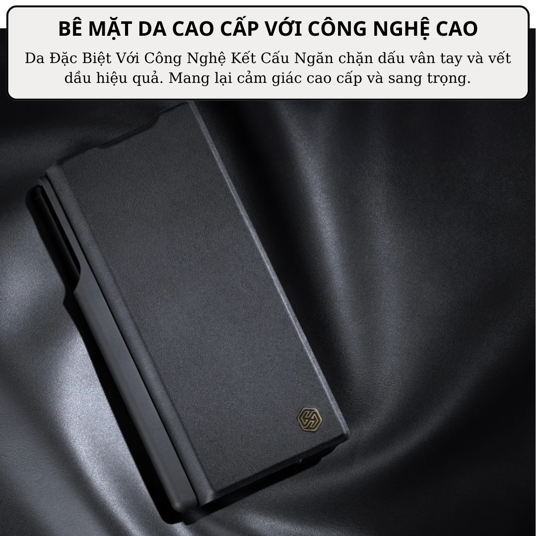 Case bao da chống sốc cho Samsung Galaxy Z Fold 6 trang bị nắp bảo vệ Camera và ngăn đựng S-Pen hiệu Nillkin Qin Pro làm bằng da cao cấp giúp chống bám vân tay, chống bám bẩn và các vệt ố dầu do vân tay và mồ hôi của bạn gây ra. Giúp giữ cho chiếc cho Samsung Galaxy Z Fold 6 của bạn được sạch sẽ và vệ sinh.