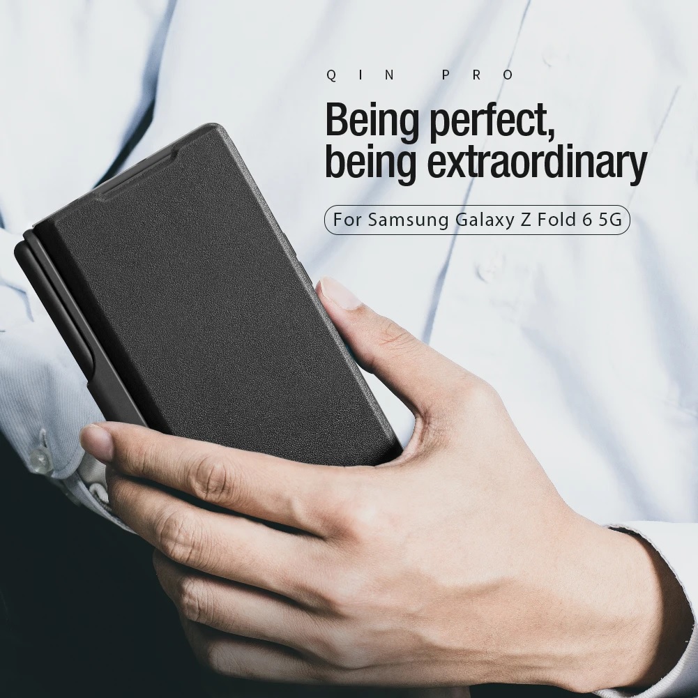 Case bao da chống sốc cho Samsung Galaxy Z Fold 6 trang bị nắp bảo vệ Camera và ngăn đựng S-Pen hiệu Nillkin Qin Pro (chất liệu da cao cấp, thiết kế thời trang cá tính)