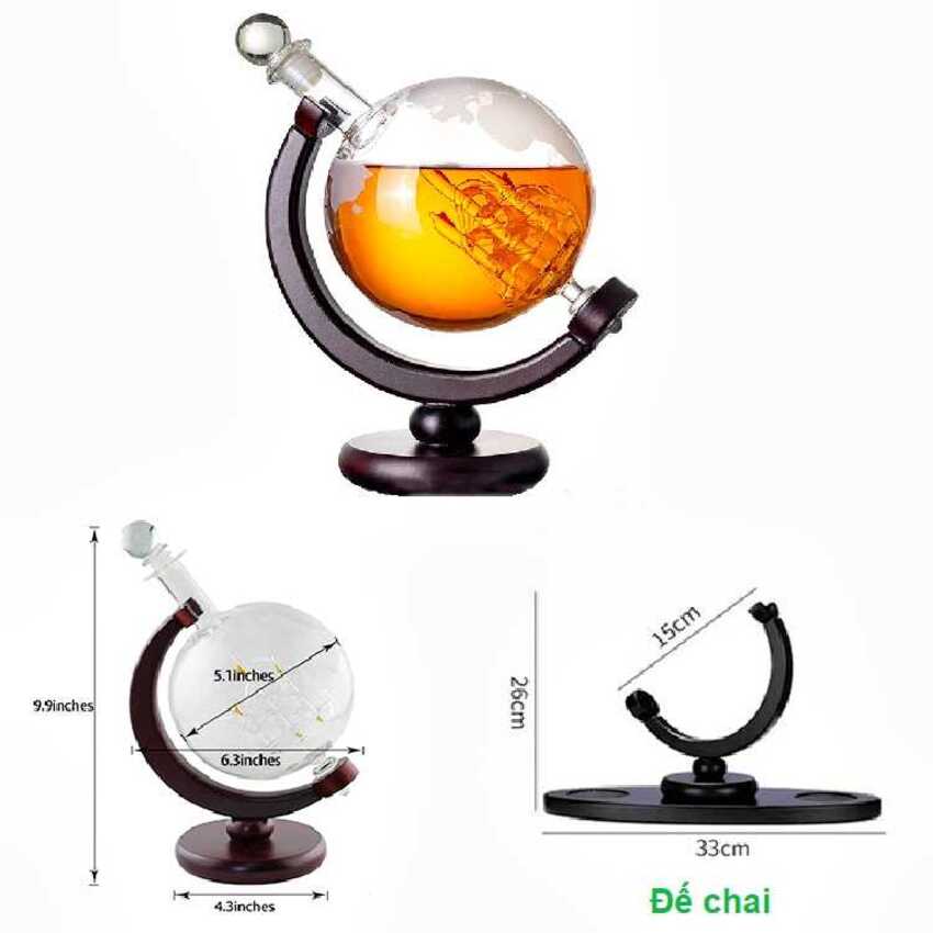 Chai Đựng Rượu Thủy Tinh 1500ML mẫu Globe cao cấp nắp thủy tinh đặc kèm đế gỗ