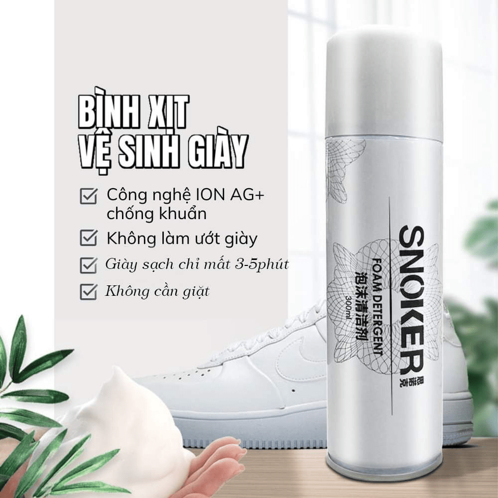 ✨Chai Xịt Tạo Bọt Vệ Sinh Giày SNOKER Cao Cấp 300ml Làm Sạch Giày Cao Cấp Giúp Giày Trắng Sáng