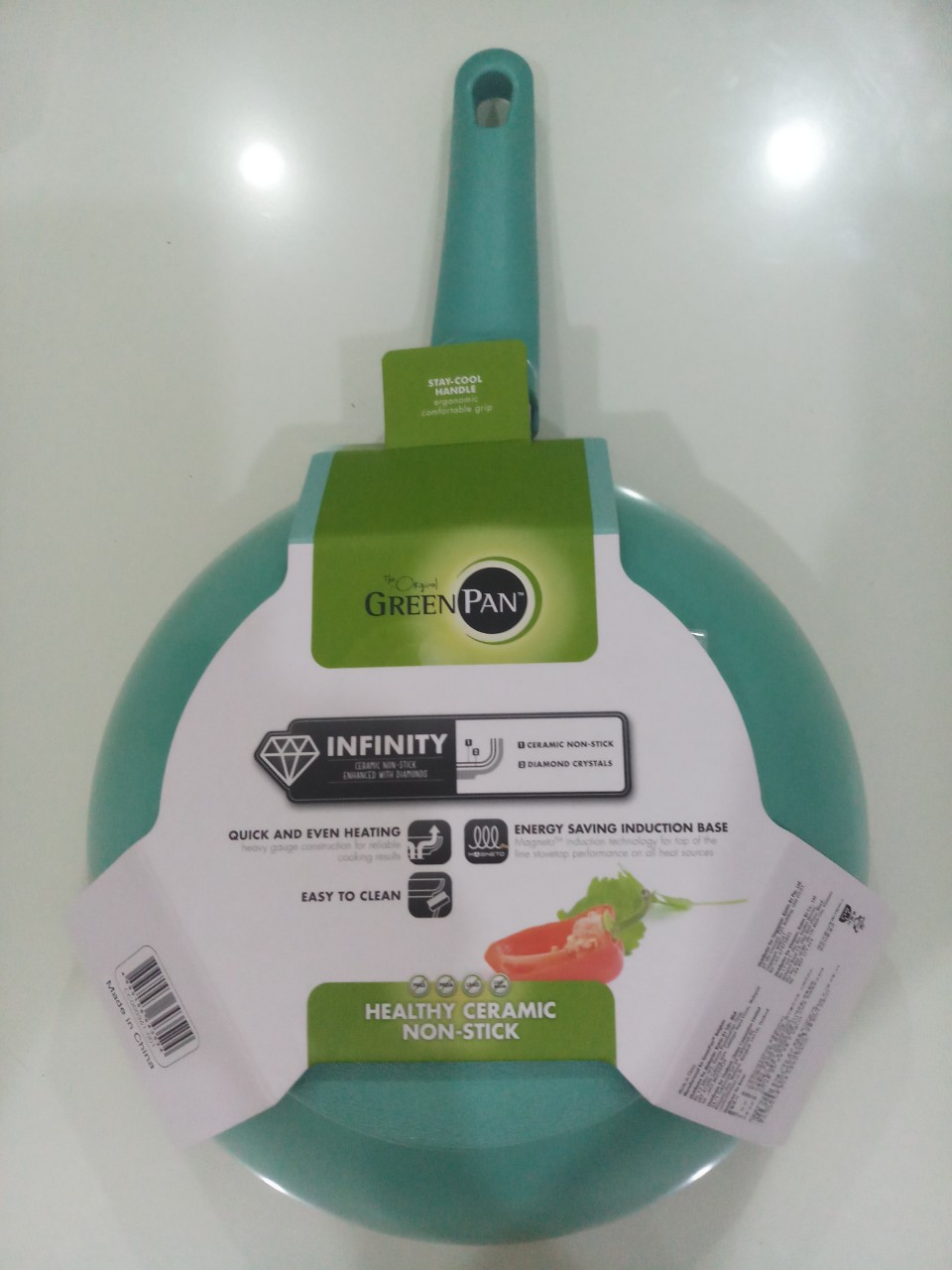Là một chiếc chảo lòng cực rộng; dùng được đa năng như chiên, xào, nướng. Rất thích hợp làm BBQ. Chảo có hoạ tiết Blakcube được phủ lớp chống dính gốm màu ngọc xanh của
