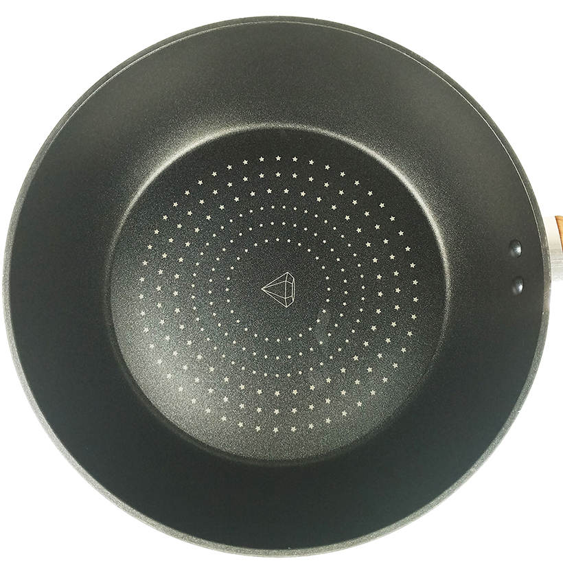 Làm bằng thép từ tính kết hợp lõi nhôm dày 6mm Lòng chảo được phủ lớp chống dính cao cấp Chảo được thiết kế kết cấu chống trơn trượt dưới đáy, rất an toàn khi