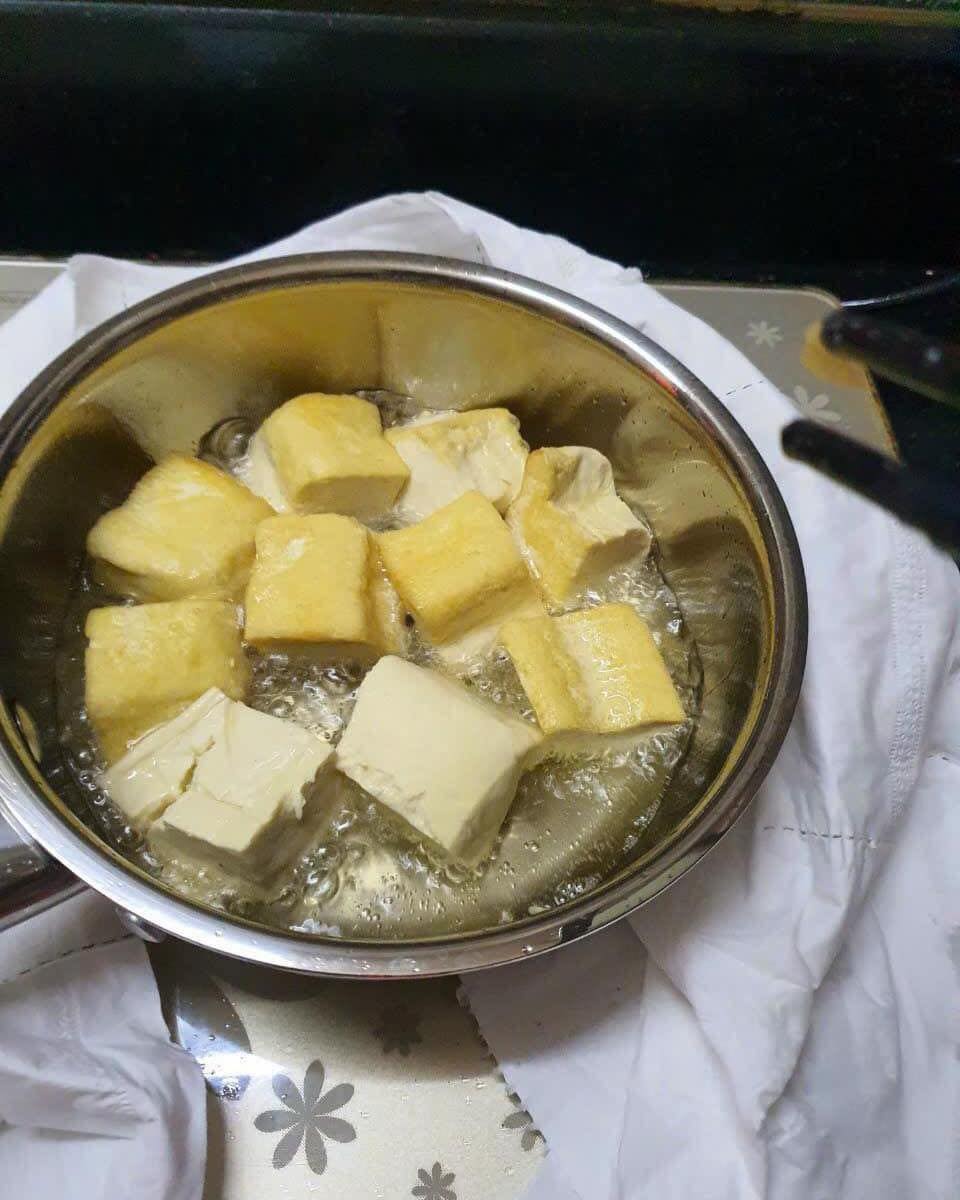 Bước 5: Nhấc chảo ra khỏi bếp khi dầu bắt đầu bốc khói và để dầu nguội.