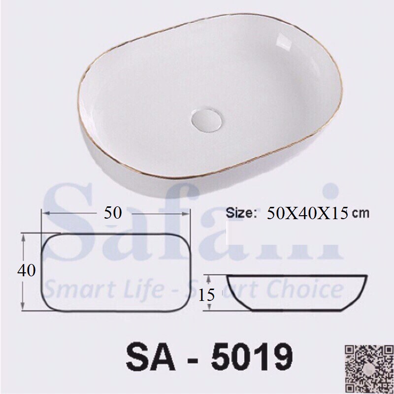 ✨CHẬU LAVABO TRẮNG VIỀN VÀNG GRVL 8153C