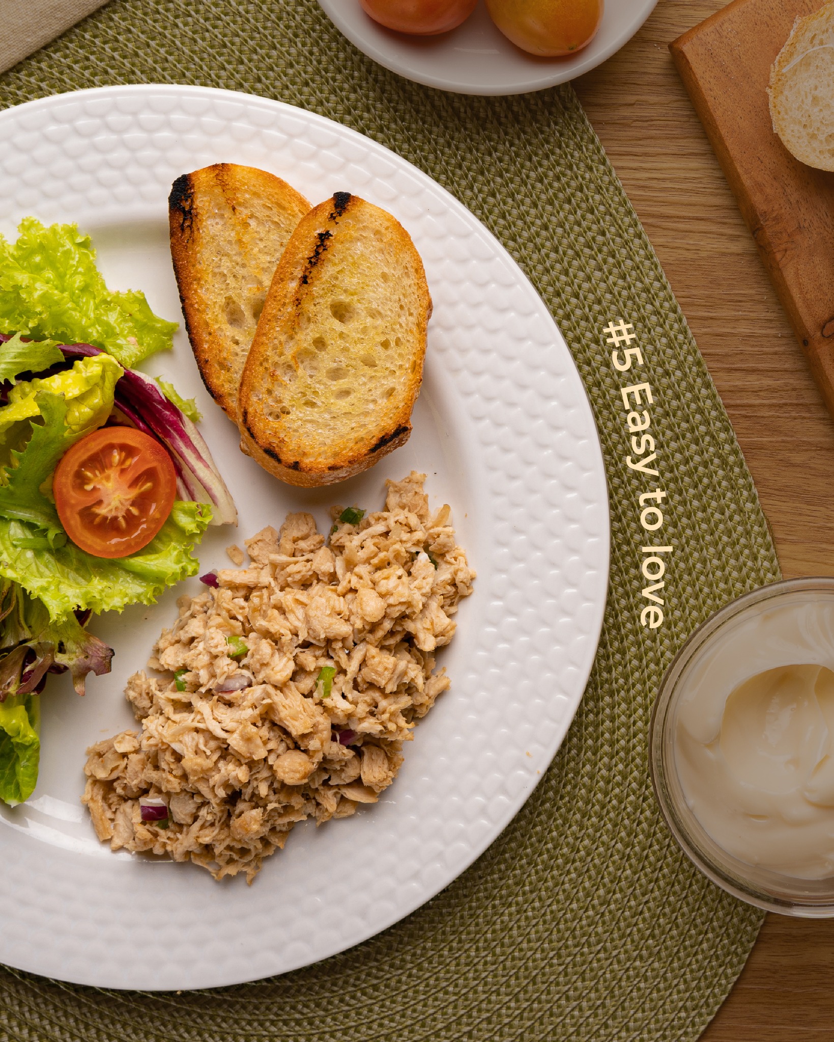 - Cá ngừ chay ngâm dầu Bổ sung ngay vào thực đơn của bạn để chế biến thêm ngàn món ăn ngon đặc sắc với Unmeat nhé! Thành Phần: Nước, lúa mì và protein đậu nành không biến đổi gen, dầu hướng dương (10%), hương liệu tự nhiên (hương cá ngừ), muối, nước dùng rau củ, ớt, chất điều chỉnh độ acid: acid citric (acidulant), gia vị (tỏi, hành), chất làm đặc (tinh bột ngô, gum đường ngô), đường và chiết xuất men. Khối lượng tịnh: 180 g/ hộp. Khối lượng ráo nước: 145 -155g/ hộp Hướng dẫn sử dụng: Dùng ăn ngay hoặc chế biến. Hướng dẫn bảo quản: Bảo quản nơi khô mát, tránh ánh nắng mặt trời Thông tin cảnh báo: Sản phẩm có chứa lúa mì và đậu nành. Không nên sử dụng khi bao bì rỉ sét hoặc nắp hộp bị phồng. Ngày sản xuất: Xem trên bao bì sản phẩm (Ngày/ tháng/ năm) Thời hạn sử dụng: 36 tháng kể từ ngày sản xuất. Hạn sử dụng: ghi trên bao bì sản phẩm (Ngày/ tháng/ năm). Xuất xứ: Philippines - Nhà sản xuất: General Tuna Corporation