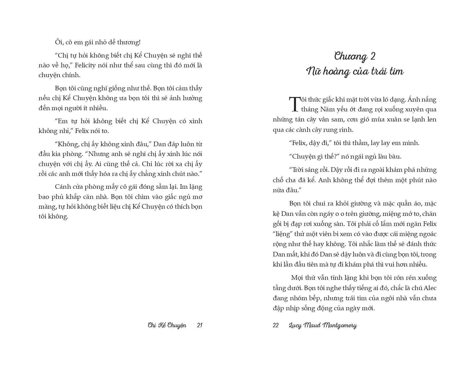 Độc giả Việt Nam hẳn đã quen với hình ảnh cô bé Anne Tóc Đỏ và Emily sống trên đảo Hoàng Tử Edward dưới ngòi bút của nữ nhà văn L. M. Montgomery. Người đọc có thể cho rằng Emily hoặc Anne là một phần tác giả, nhưng nhân vật được tác giả hóa thân nhiều nhất chính là Sara Stanley - Chị Kể Chuyện. Montgomery đã từng thừa nhận rằng Sara Stanley chính là mình.