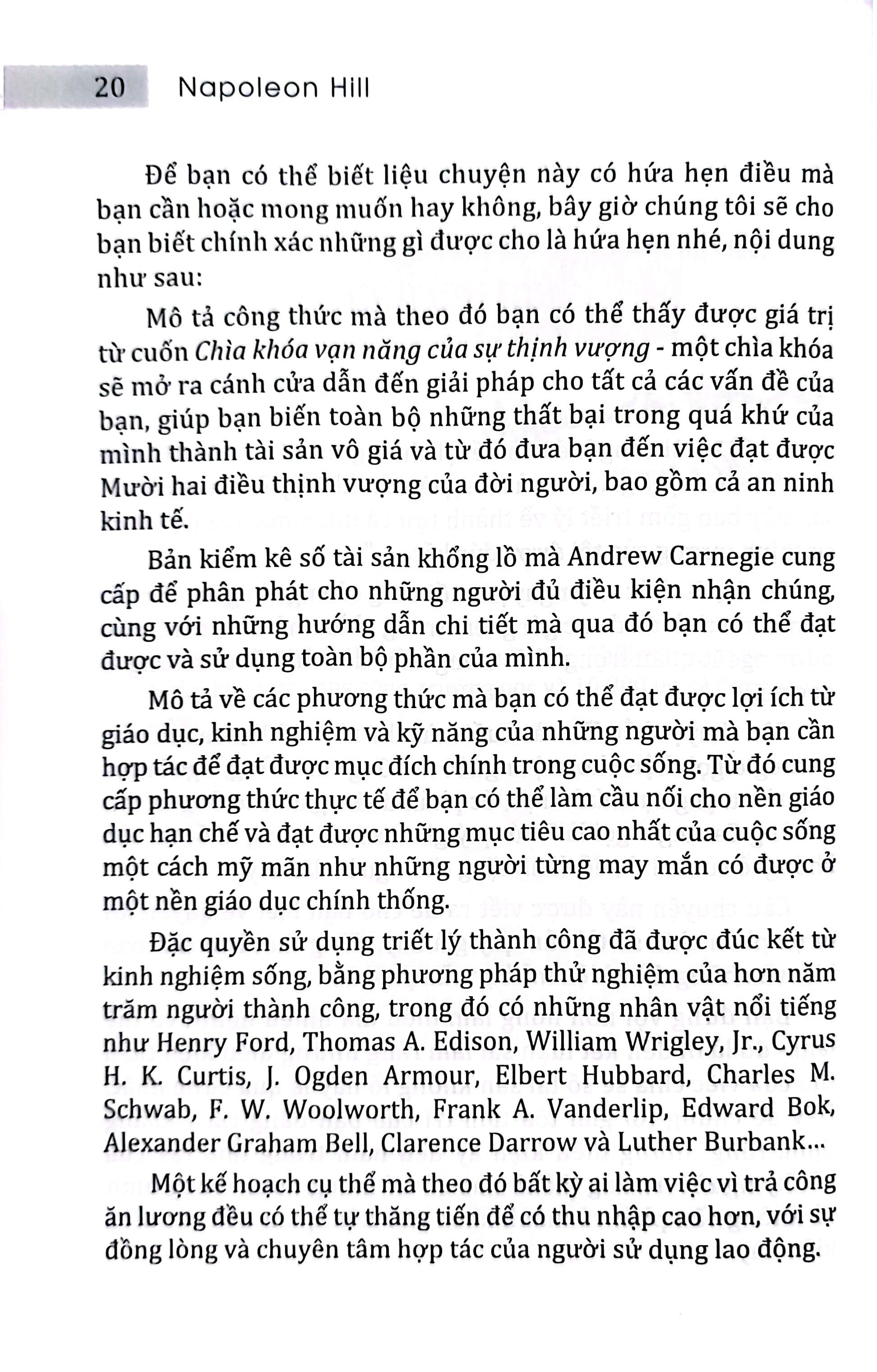 Napoleon Hill là tác giả truyền cảm hứng nổi tiếng người Mỹ với tác phẩm tiêu biểu Nghĩ giàu làm giàu, một trong những cuốn sách bán chạy nhất mọi thời đại được ông viết ra khi mới 25 tuổi. Cuốn sách này đã góp mặt vào nhiều câu chuyện thành công trên thế giới. Với triết lý sắc sảo của m.ình, ông được mệnh danh là “người tạo ra những nhà triệu phú”.