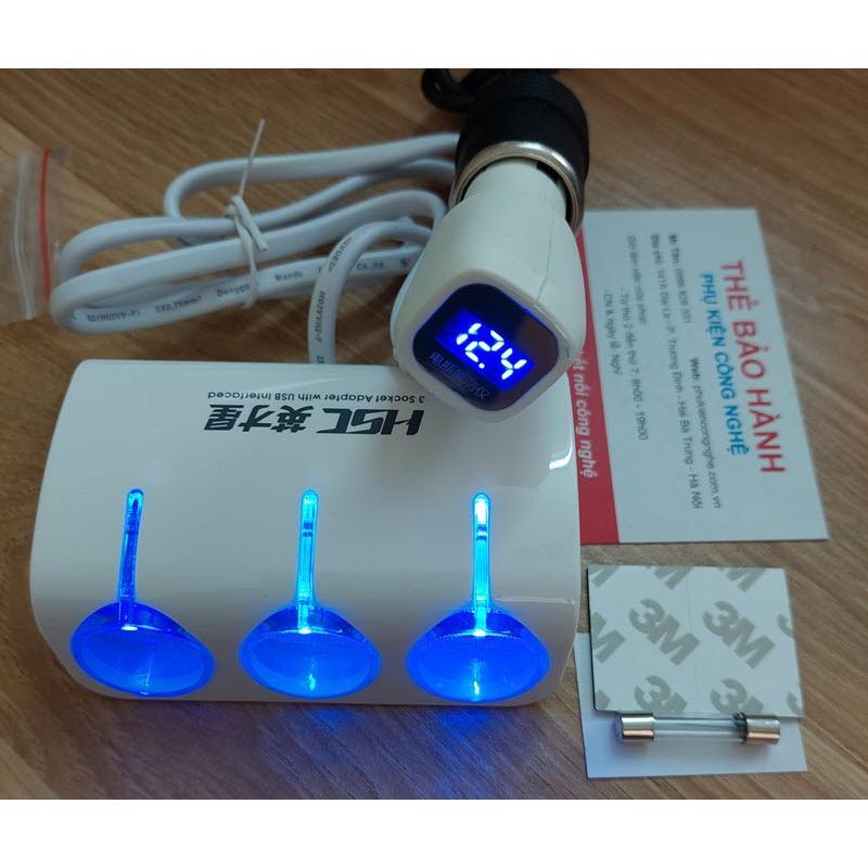 ✨Chia tẩu Ô tô 1 ra 3 công suất 120W có cổng sạc USB và báo điện áp