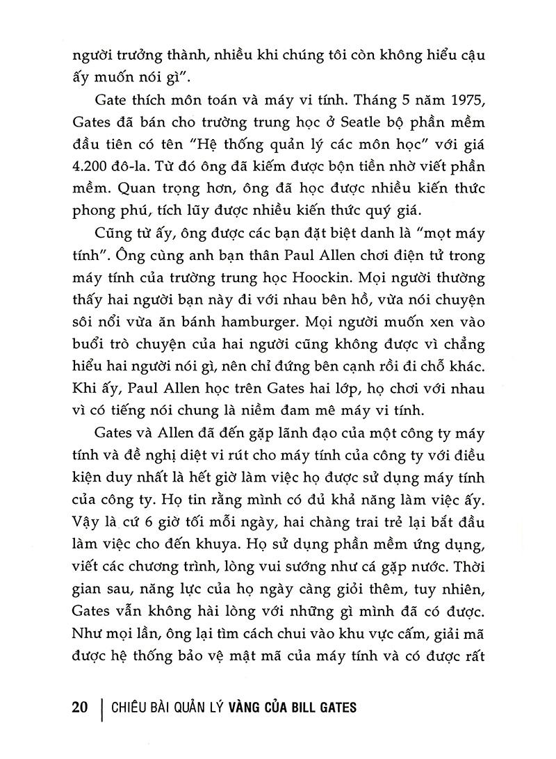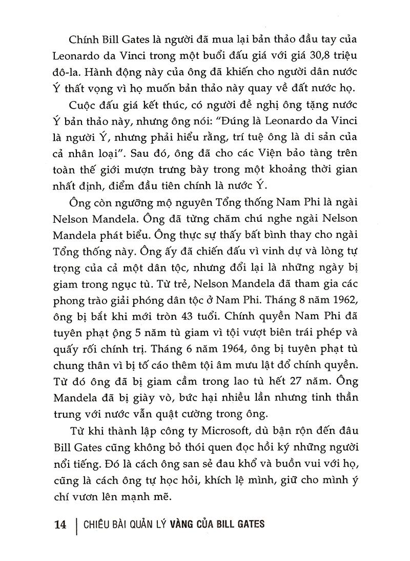 Tại sao Bill Gates lại thành công đến vậy? Tại sao lịch sử lại chọn ông? Là một nhà lãnh đạo, Bill Gates đã có những phương pháp quản lý như thế nào để Microsoft không ngừng phát triển, liên tục đi từ thành công này đến thành công khác trong nhiều năm? Cuốn sách Chiêu Bài Quản Lý Vàng Của Bill Gates sẽ giải mã bí mật thành công của nhà tỉ phú này.
