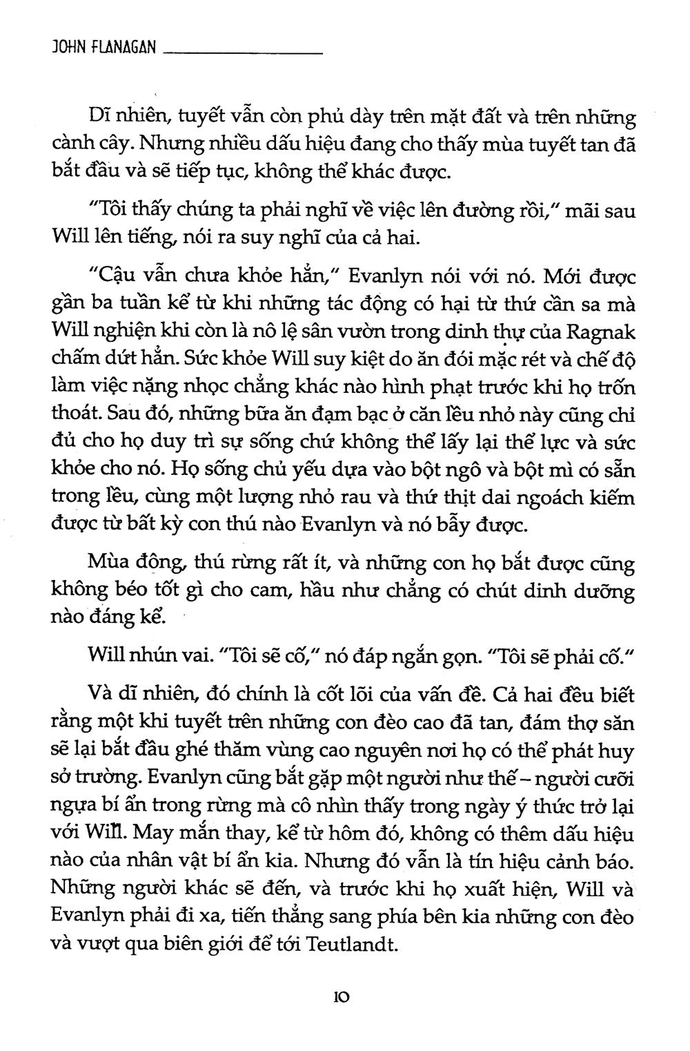 Được giải thoát khỏi kiếp nô lệ ở vùng đất đóng băng Skandia, kế hoạch trở về vương quốc Araluen của cậu nhóc Will và cô bạn Evanlyn đổ bể khi Evanlyn bị bắt. Dẫu chưa bình phục song Will vẫn bận rộn tập huấn, hòng muốn tìm được bạn mình. Rủi thay, không lâu sau, cậu nhận ra mình bị bao vây với số lượng quân địch áp đảo. Will chắc chắn sẽ mất mạng nếu không có Halt và Horace liều mình giải cứu vào phút chót.