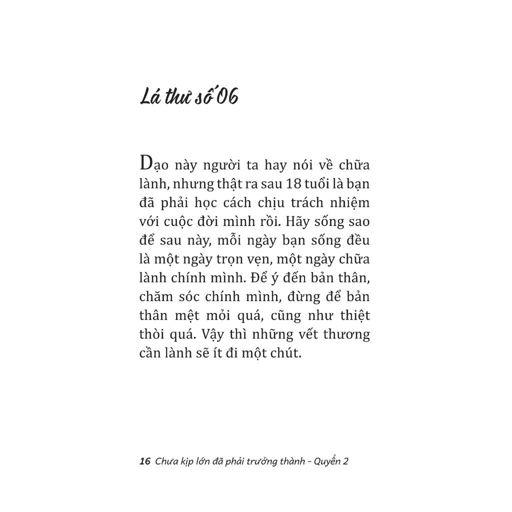 Nếu như bạn đang cảm thấy chơi vơi, vô định như thế, thì hãy để cuốn sách “Chưa kịp lớn đã phải trưởng thành” phiên bản mùa hè bầu bạn cùng bạn. Đây cũng là cuốn sách thứ 2 trong bộ sách “Chưa kịp lớn đã phải trưởng thành” của Timebooks - Bộ sách đồng hành cùng các bạn trẻ trên hành trình học cách lớn lên.