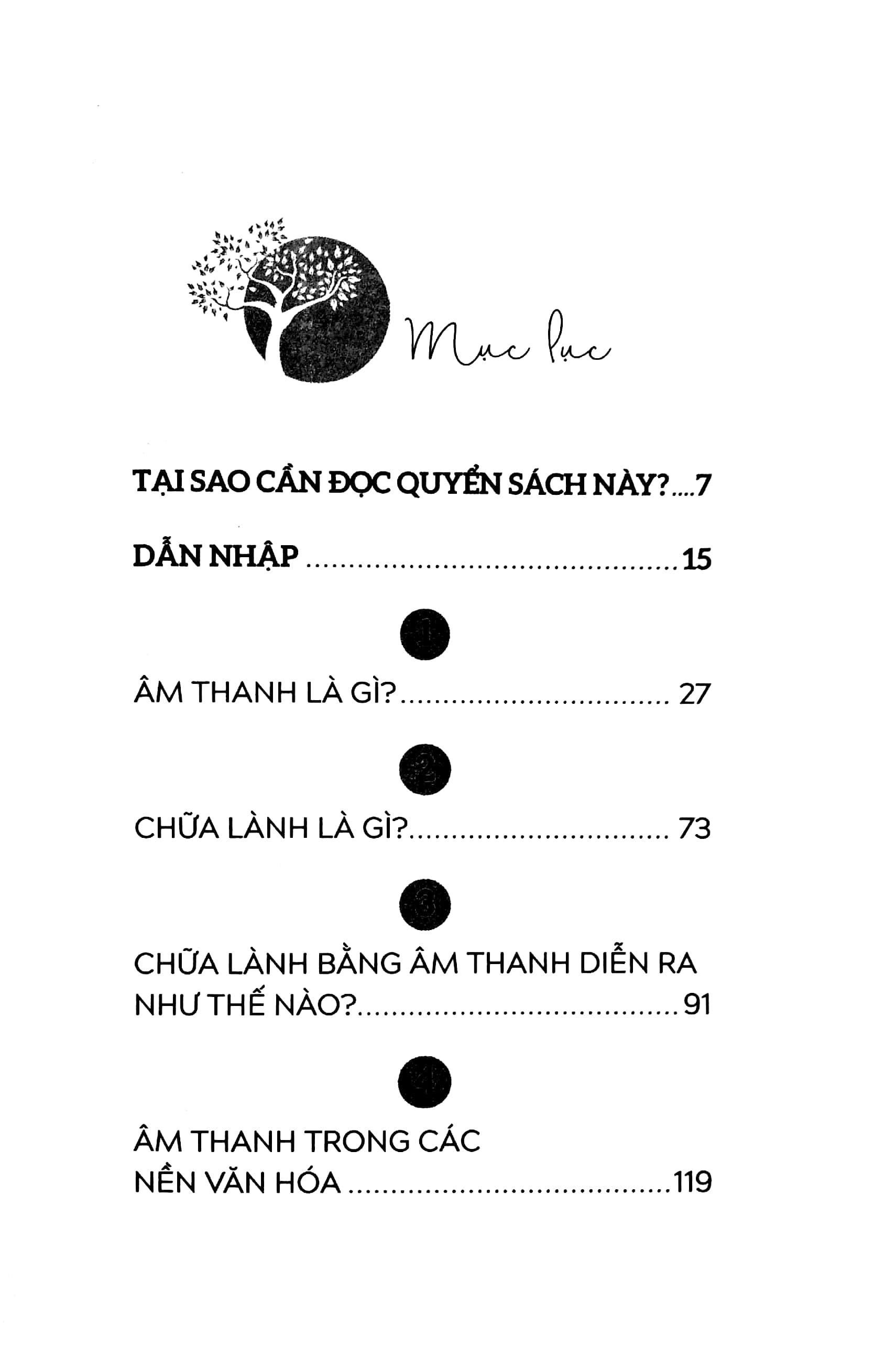 Với nhiều thông tin và bài tập hữu ích, được trình bày một cách ngắn gọn và dễ hiểu, CHỮA LÀNH BẰNG ÂM THANH sẽ đưa bạn vào cuộc hành trình khám phá những lợi ích tuyệt vời của âm thanh chữa lành. Khi hiểu rõ hơn về bản chất của âm thanh, bạn sẽ có thể tìm cho mình công cụ phù hợp – chẳng hạn như một nhạc cụ, một bản nhạc sâu lắng, hay chính giọng nói của mình – để tiếp thêm năng lượng, thư giãn đầu óc, và thậm chí là cải thiện sức khỏe một cách toàn diện, cả về thể chất, cảm xúc lẫn tinh thần.
