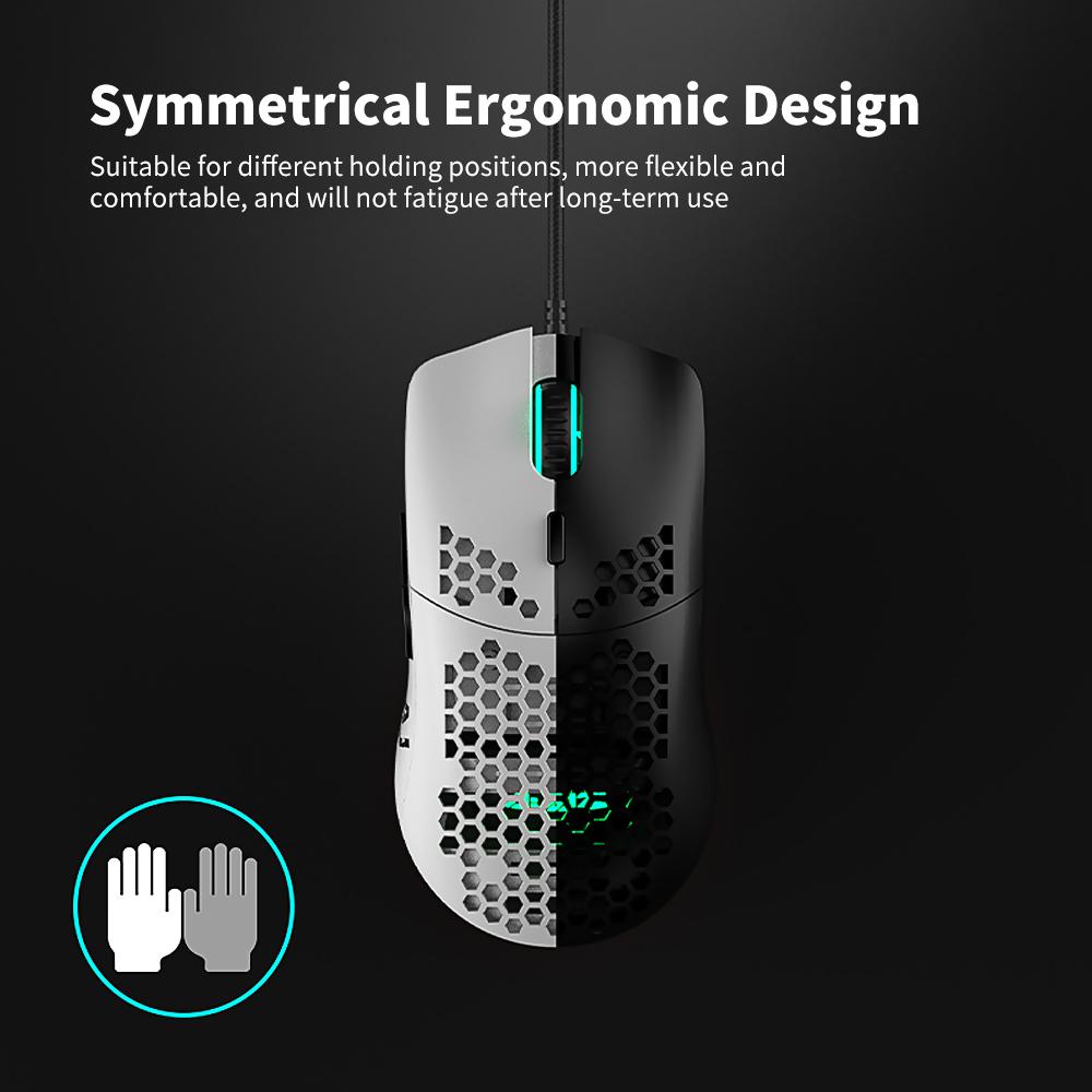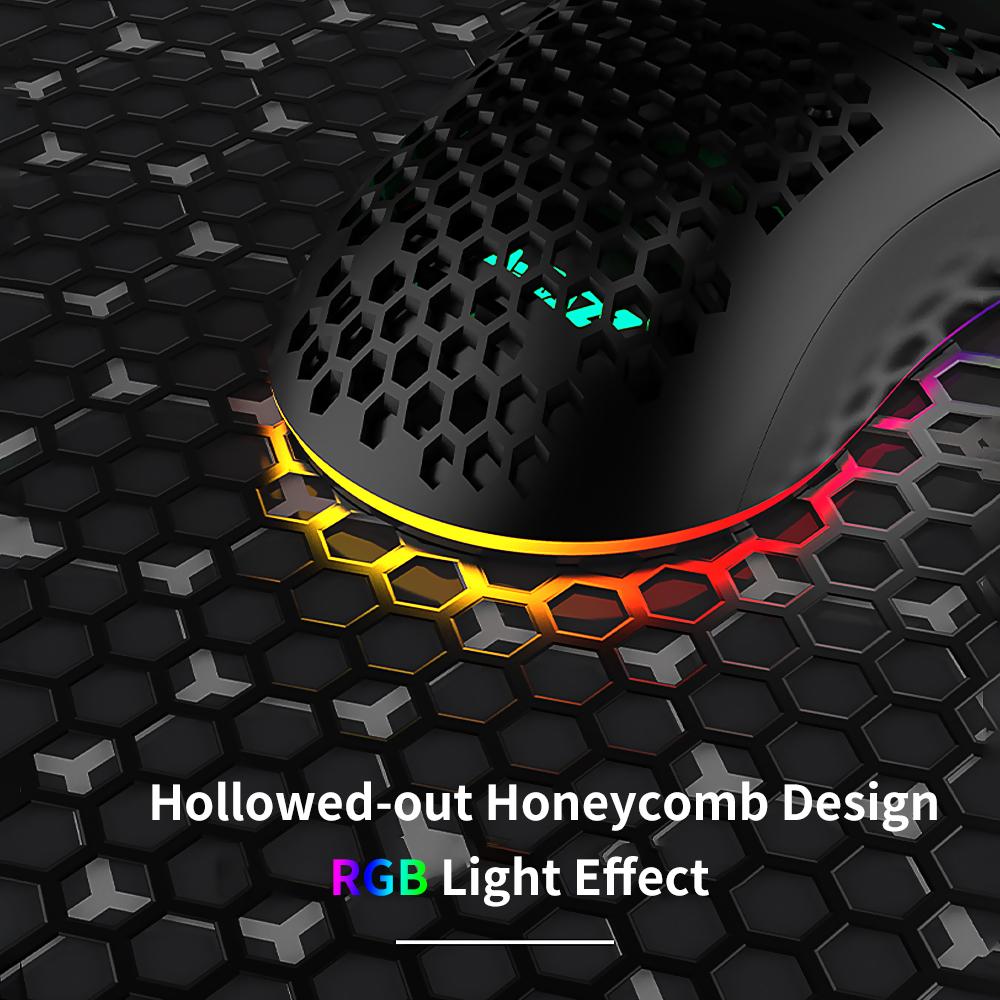 Features: Honeycomb hollow design, meets the ventilation and cooling effect required by the game player for a long time playing. It supports adjustable 800/1600/2400/3200/4800/6400DPI to meet a variety of needs, maximum 6400DPI provides high precision,