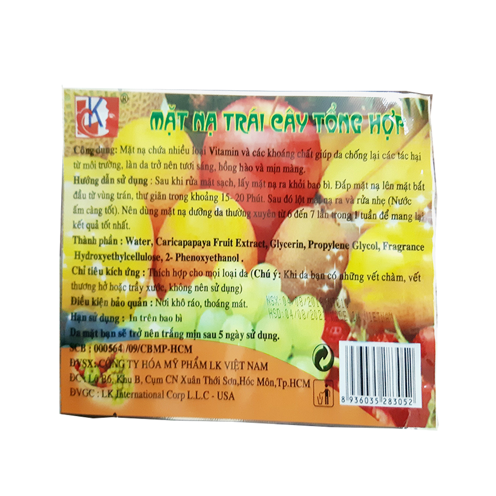 ✨Combo 10 miếng mặt nạ dưỡng da LK chiết xuất Trái cây tổng hợp 50g (Synthetic Fruit Mask 50g)