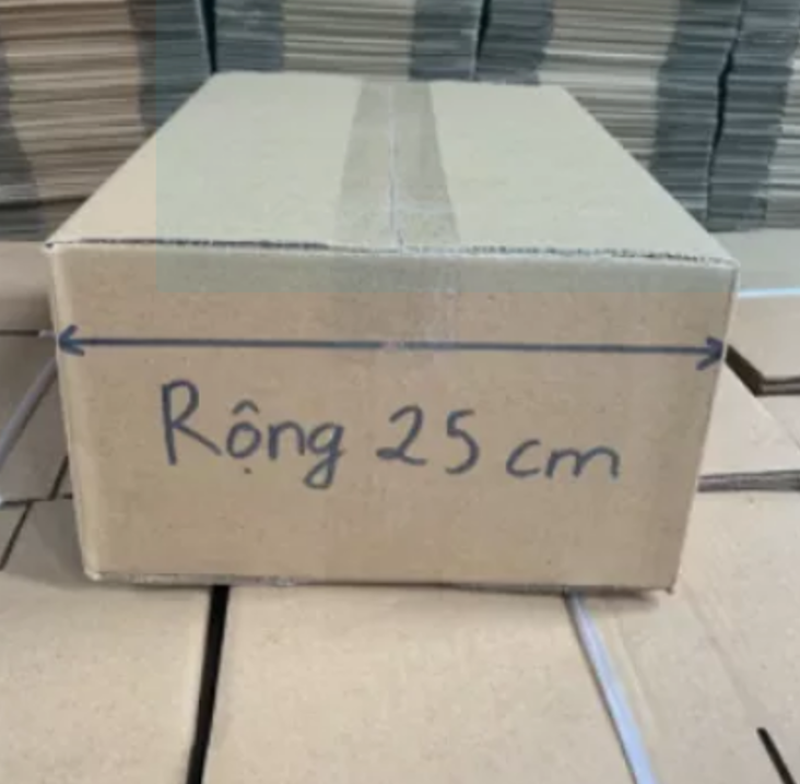 • Kích thước hộp carton 35x25x15: (kích thước phủ bì) - tức dài 35cm, rộng 25cm, cao 15cm, size số kích thước +- 3% - Quy Cách hộp: carton 3 lớp, sóng B , 1 mặt nâu đáy mộc, loại nắp cài 2 đầu, hộp trơn không in.