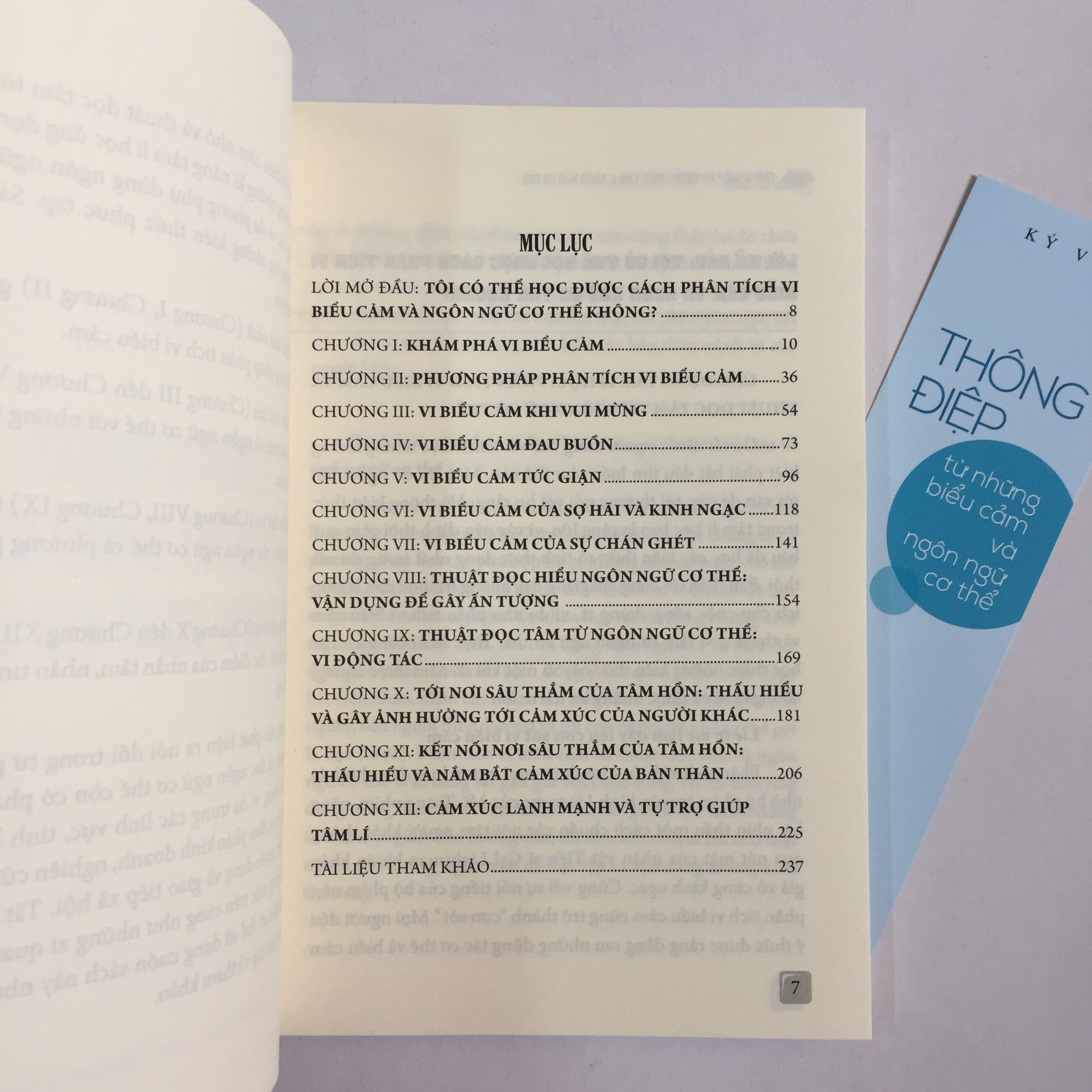 Bí Quyết Đọc Tâm - Thấu Hiểu Người Khác Chỉ Trong Giây Lát Xã hội giống như một ván cờ mà ở đó, một nước đi dù sai lầm hay đúng đắn sẽ trực tiếp ảnh hưởng đến tất cả những lựa chọn tiếp theo. Con người là một “social animal” (loài động vật xã hội), cho nên loài người không thể tránh khỏi việc phải tương tác với thế giới bên ngoài dù muốn hay không. “Bí quyết đọc tâm” dẫn dắt chúng ta lên một hành trình tâm lý học gần gũi và trực quan. Với lối viết đặc biệt, phong cách trình bày hiện đại, cuốn sách này đem đến cho độc giả cái nhìn toàn diện, thú vị về các hiện tượng tâm lí phổ biến của thời đại; đồng thời giới thiệu tới các bạn rất nhiều bộ phim tâm lí nổi tiếng thế giới- những bộ phim có thể khiến mọi trái tim phải rung động. Hy vọng cuốn sách này sẽ trở thành món quà hữu ích đối với những ai thật tâm muốn thấu hiểu người khác. Thông Điệp Từ Những Biểu Cảm Và Ngôn Ngữ Cơ Thể + Sức Mạnh Của Những Thay Đổi Tâm Lý Tinh Tế  Mọi người đều ý thức được rằng đằng sau những động tác cơ thể và biểu cảm bình thường nhất mà chúng ta ngày nào cũng thấy, lại cất giấu một lượng lớn thông tin. Chỉ cẩn dựa vào phân tích vi biểu cảm và thuật đọc tâm từ ngôn ngữ cơ thể là có thể giải mã một cách chính xác và khoa học các mật mã phi ngôn ngữ, kết nối với nơi sâu thẳm trong tâm hồn của bản thân mình và của người khác. Những phương pháp phân tích vi biểu cảm trong cuốn sách này có thể giúp bạn tránh được những thất bại trong cuộc đời, nâng cao kinh nghiệm cuộc sống cho bản thân, mở ra những cơ hội thành cô Cuốn sách này sẽ giúp bạn thấu hiểu biểu cảm và ngôn ngữ cơ thể của một người, khám phá được cảm xúc thật sự của người đó, tránh được những hiểu lầm không đáng có trong giao tiếp và cải thiện mối quan hệ đôi bên. Cảm ơn bạn đã tham khảo 2 cuốn sách này. Chúc một ngày tốt lành!