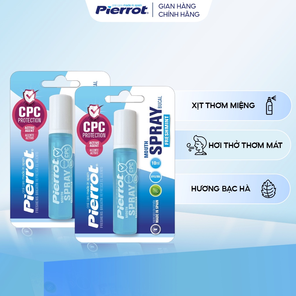 - Sản phẩm dành cho người từ 18 tuổi trở lên. CÔNG DỤNG Pierrot Mouth Spray 10ML giúp người dùng cảm thấy tự tin hơn mỗi khi giao tiếp và chống hôi miệng hiệu quả. Xịt thơm miệng với công thức khử trùng giúp kháng khuẩn, loại bỏ mùi hôi và mảng bám, cho hơi thở thơm mát suốt cả ngày.