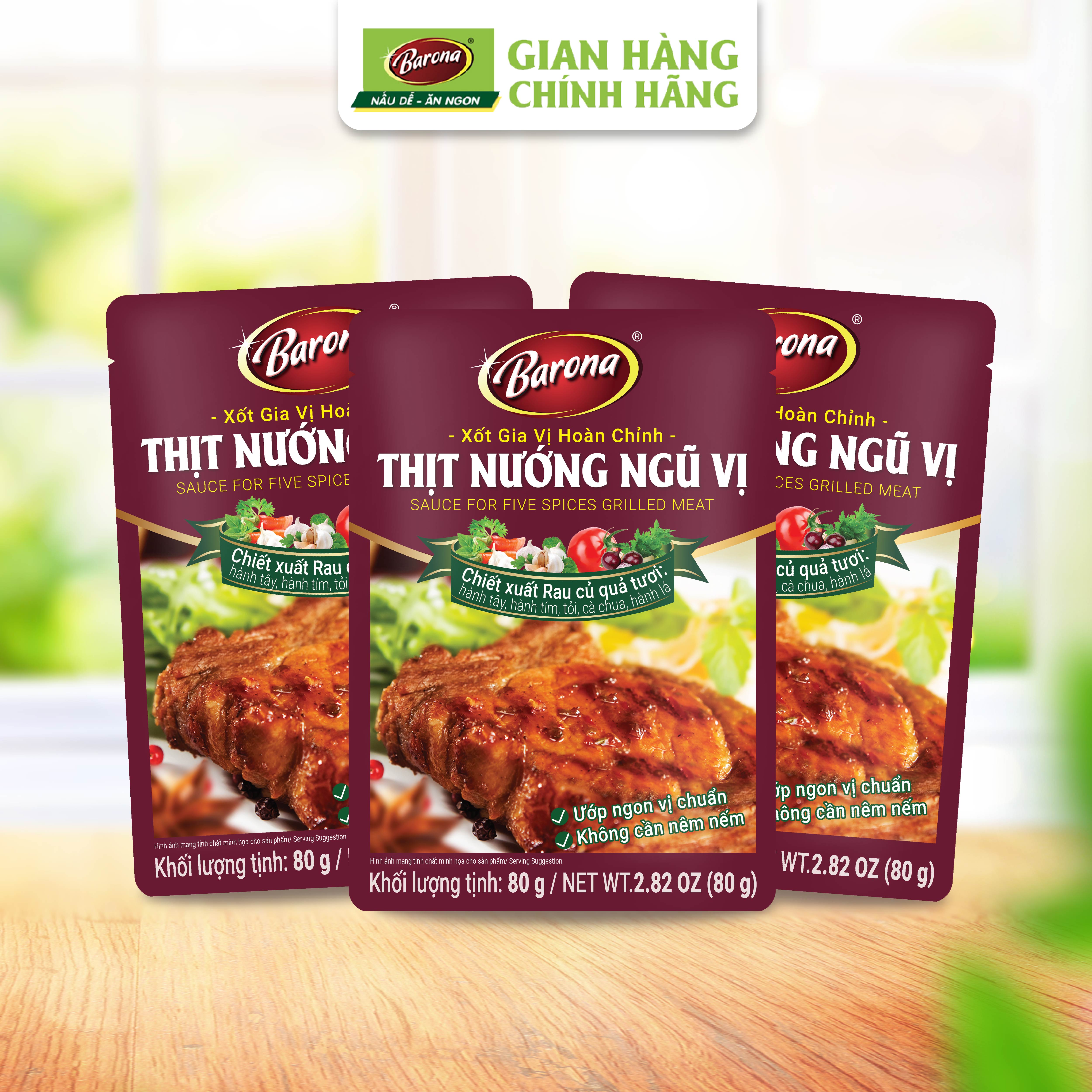 Xốt Gia Vị Hoàn Chỉnh Barona là công thức phối trộn độc đáo giữa CHIẾT XUẤT RAU CỦ QUẢ TƯƠI như hành, tỏi, me, cà chua…cùng các loại gia vị truyền thống được chọn lọc, đem đến món ngon chuẩn vị trong tích tắc mà KHÔNG CẦN NÊM NẾM thêm bất kỳ gia vị nào khác.