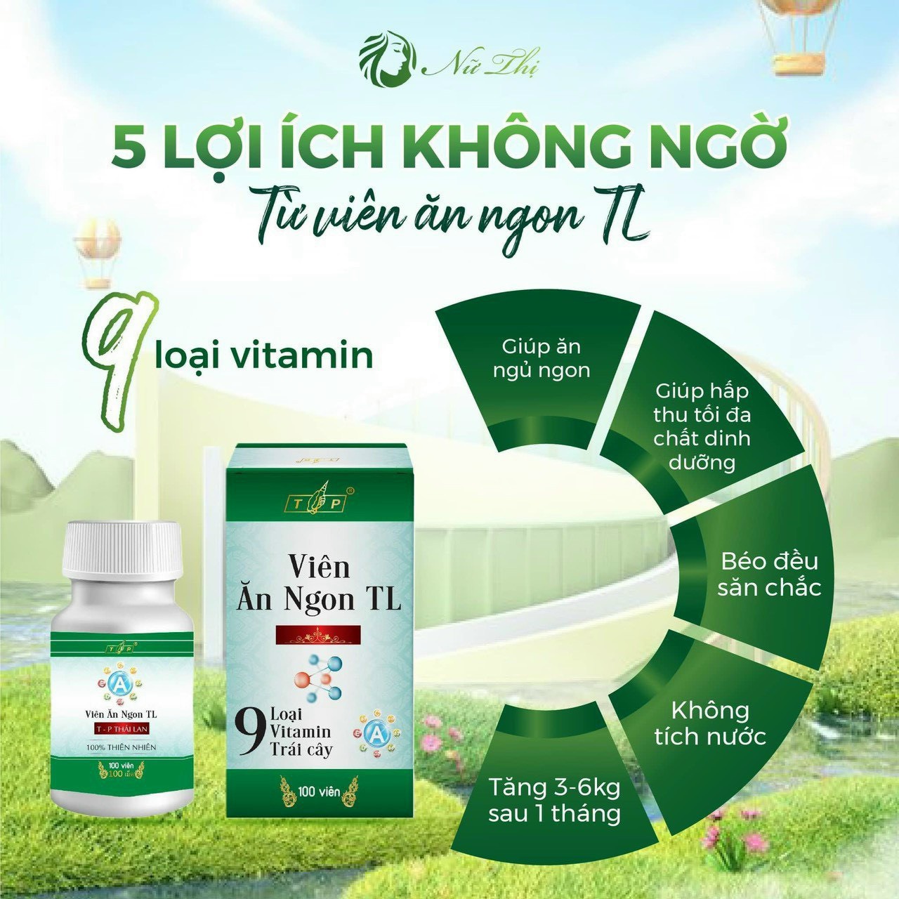 Vitamin Tăng Cân TP Thái Lan Tăng cân an toàn, hiệu quả - Cam kết tăng 2-6 kg trên 1 hộp 100 viên ️ - Dùng cho người lớn và trẻ em từ 3 tuổi