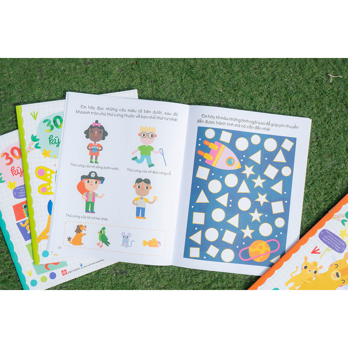 Mỗi cuốn sách là hơn 30 thử thách thú vị, giúp các em rèn luyện kỹ năng tư duy bằng cách: